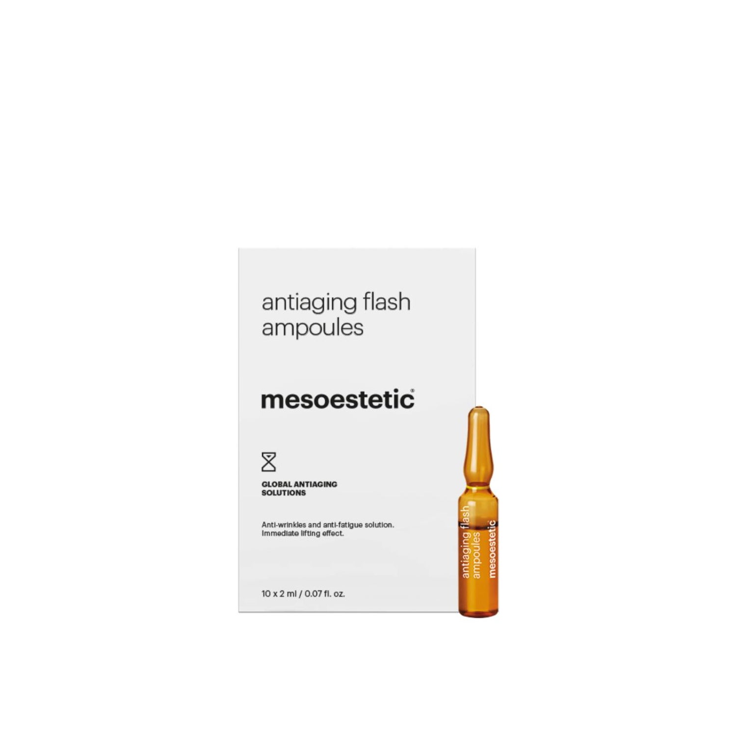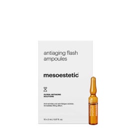 Mesoestetic Antiaging Flash Ampoules 10x2ml es un tratamiento diario anti-edad adecuado para todo tipo de pieles. Este producto ofrece una solución eficaz contra las arrugas y la fatiga, proporcionando un efecto lifting inmediato.