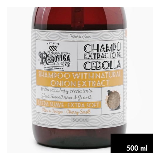 Mi Rebotica Champú Con Extracto De Cebolla Ultrasuave 500ml es un champú que contribuye a estimular el crecimiento capilar, con una acción purificante y calmante. Formulado a base de extracto de cebolla con olor a cereza que aportan nutrición al cabello y lo reparan.