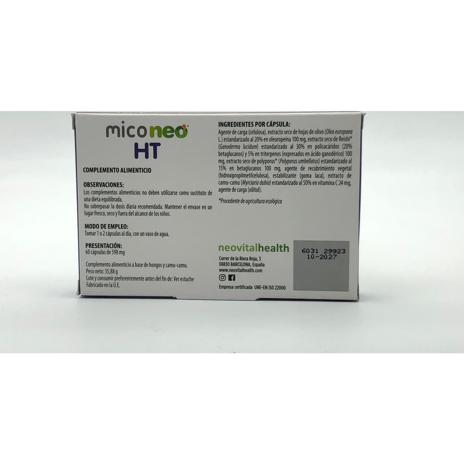 Mico Neo HT 60Cáps son unas cápsulas gastrorresistentes que refuerzan el sistema inmunitario para combatir múltiples afecciones. Su fórmula combina los extractos de Reishi, hojas de olivo y polyporus. Esta mezcla de plantas medicinales aporta propiedades al organismo, indicadas para combatir la hipertensión, la retención de líquidos y los edemas.