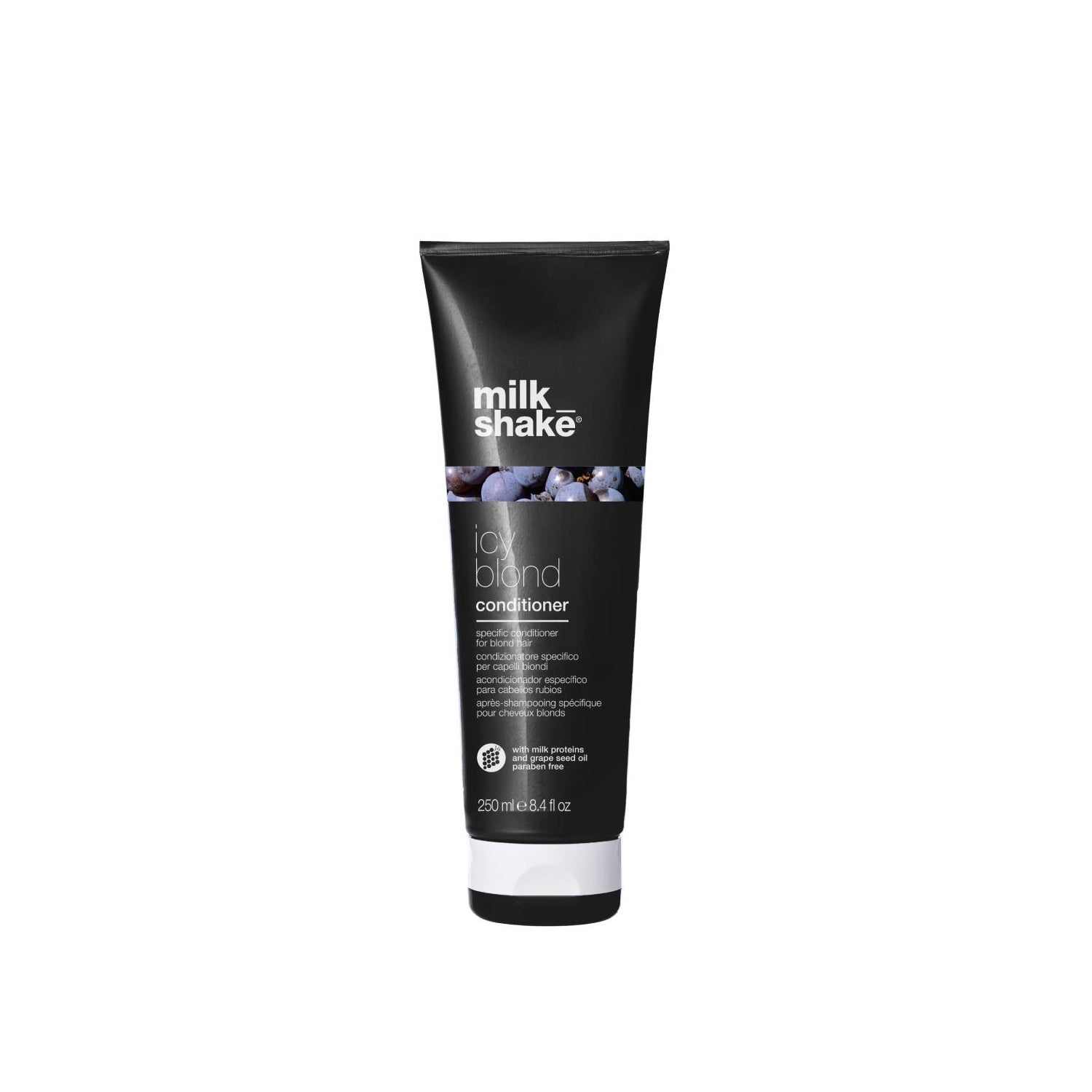 Milk Shake Icy Blond Conditioner 250ml es un acondicionador diseñado para el cuidado y la neutralización de tonos no deseados en el cabello rubio muy claro o platino. Su fórmula exclusiva está elaborada para quienes desean mantener un rubio frío y luminoso, eliminando reflejos amarillos o anaranjados y aportando matices ceniza. Es ideal para cabello decolorado, teñido o naturalmente rubio claro, proporcionando un acabado profesional y duradero.