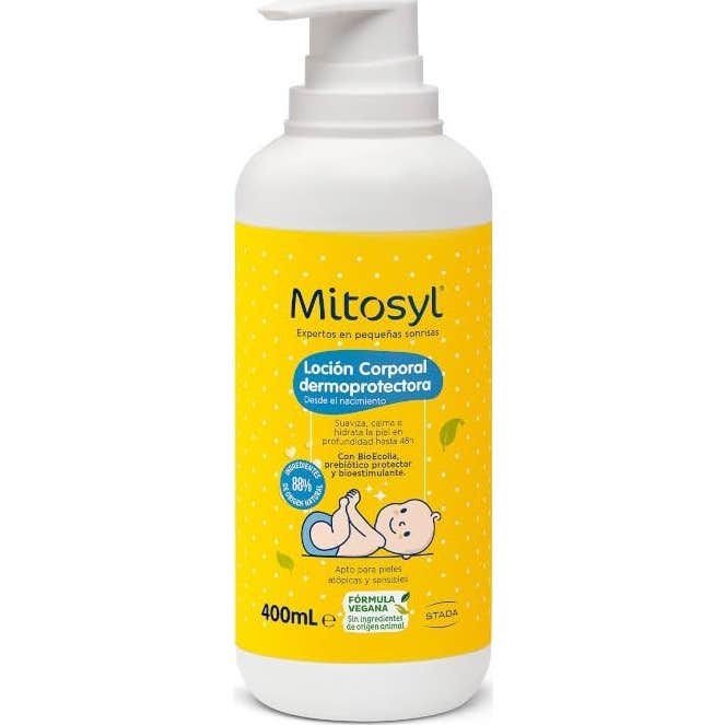 Mitosyl Loción Corporal Dermoprotectora 400ml es una loción corporal para bebés con textura ligera y de fácil absorción.