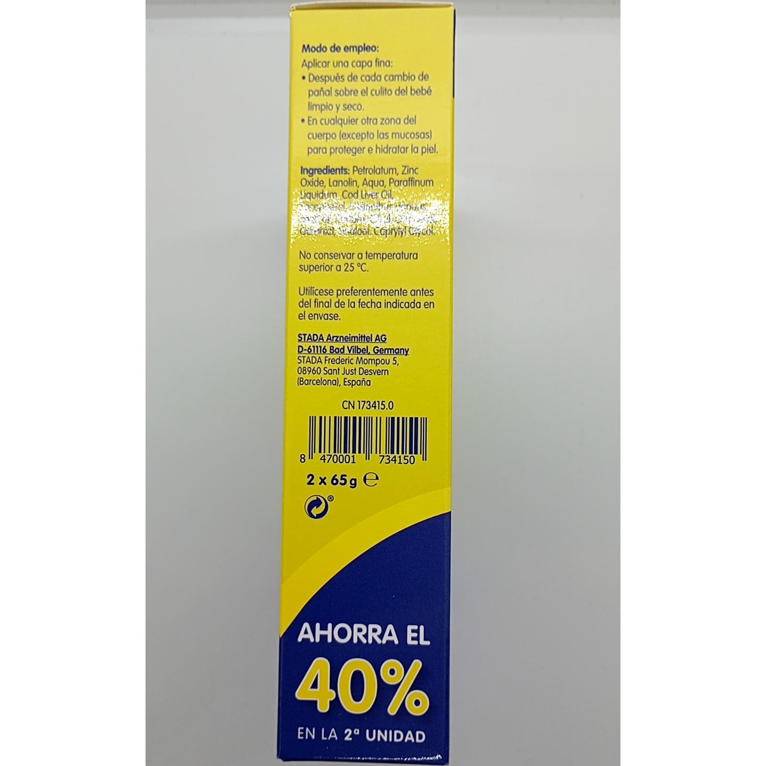 Contiene óxido de zinc, un ingrediente que aporta propiedades protectoras y astringentes, entre otras, y contribuye a proteger la piel contra la humedad y la irritación. Además, contiene aceite de hígado de bacalao, rico en vitamina A y D, que cuenta con acción protectora e hidratante, así como lanolina y vaselina, que favorecen la formación de una barrera protectora para prevenir la aparición de nuevas irritaciones.