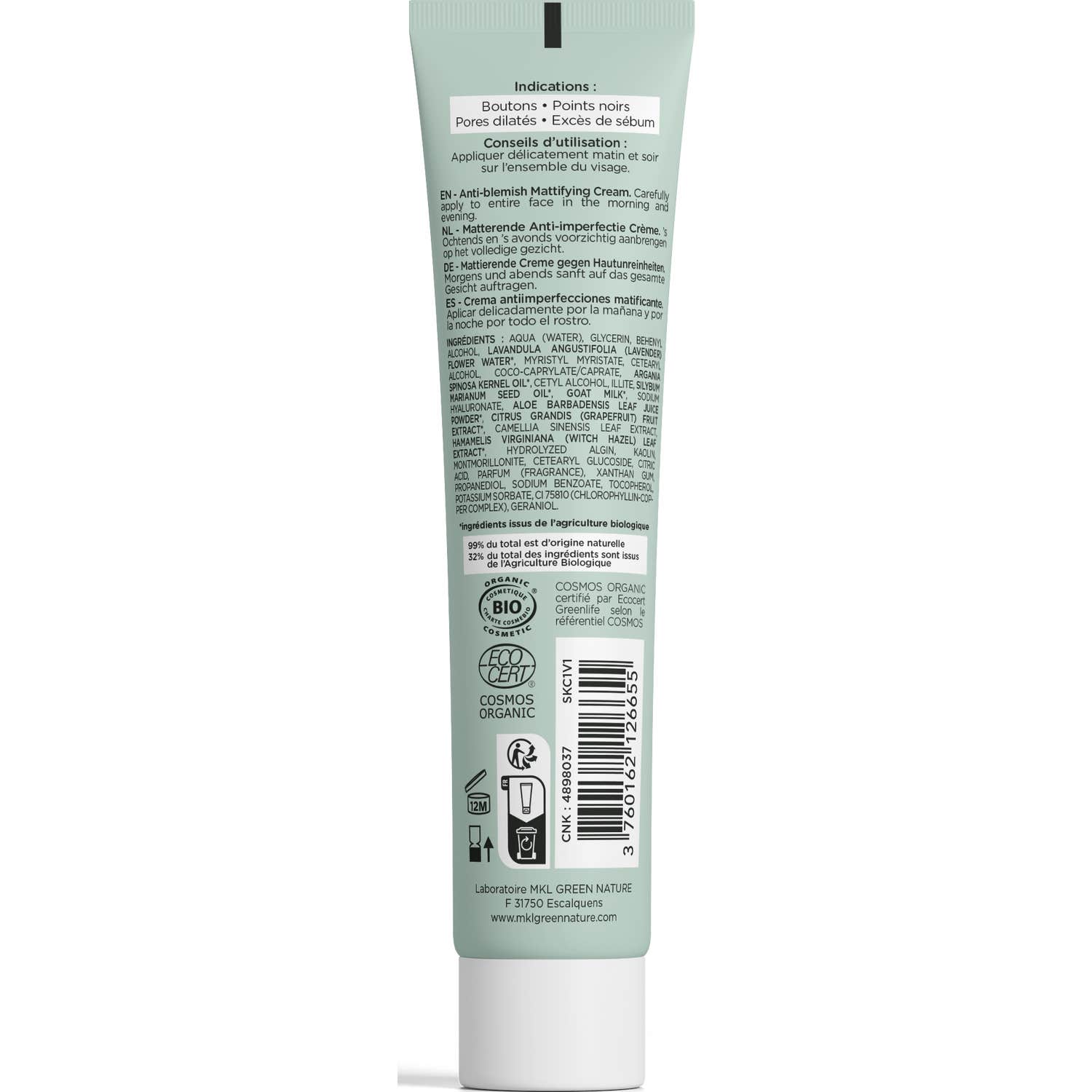 Mkl Crema Antiimperfecciones Matificante 40 ml es un tratamiento especializado diseñado para ofrecer un cuidado eficaz a las pieles con imperfecciones. Su fórmula está enriquecida con ingredientes como: