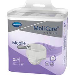 MoliCare Mobile T-grande 14uds es ropa interior desechable con efecto antibacteriano, ideal para las pérdidas de orina leves y abundantes. Cada pieza goza de una capa de distribución de fluido neutra, con el pH de la piel, con la que se evitan irritaciones.