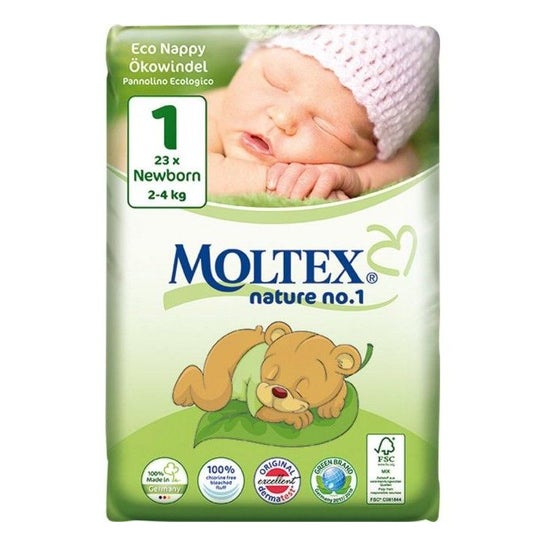 Pañales ecológicos fabricados con materiales 100% sostenibles y suaves para favorecer la higiene del bebé. Diseñados para aportar 12 horas de protección. Contienen una lámina posterior y superior de tipo textil, que se siente extra suave al contacto con la piel del bebé. Permite la circulación del aire en la zona de la espalda evitando completamente la humedad y la posible irritación de la piel. Sus bandas laterales elásticas permiten total libertad de movimiento y comodidad. Tiene propiedades ultra absorbentes manteniendo el culito del bebé seco. Su sistema de cierre y sus laterales ultra-elásticos permiten que el pañal se adapte perfectamente a su cintura, piernas y culito. Para bebés de 2 a 4Kg, talla 1.