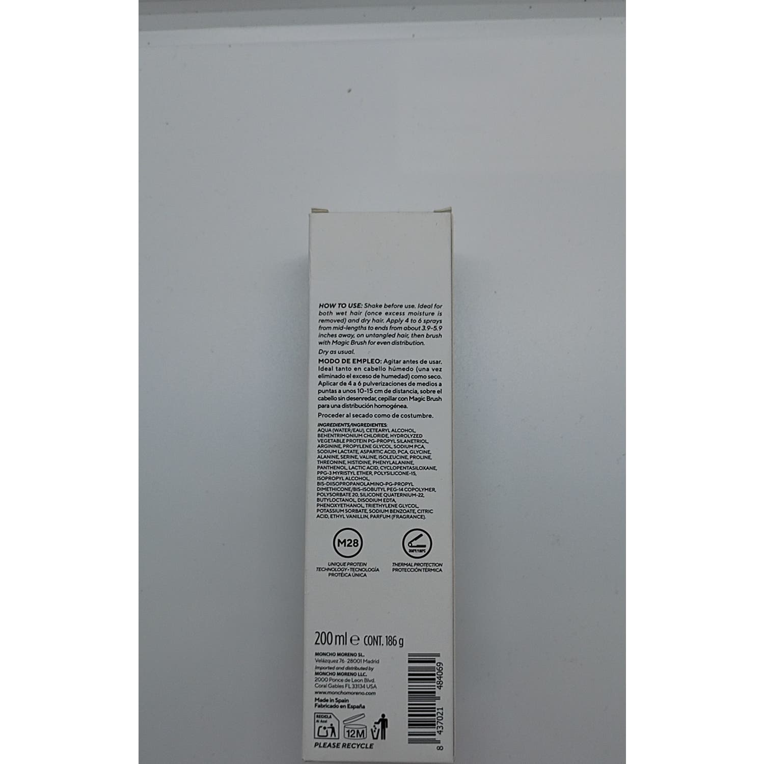 Crema capilar elaborada en forma de spray a base de arginina, ácido aspártico, urea y proteína vegetal que ayuda a reparar el cabello dañado.