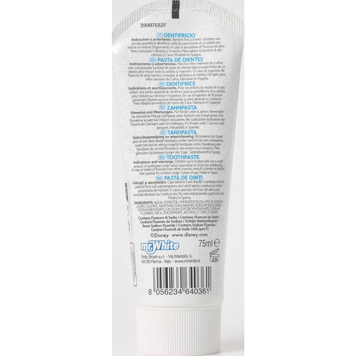 Este dentífrico presenta un diseño colorido con la temática de Mickey y sus amigos, lo que añade un toque divertido al momento del cepillado.