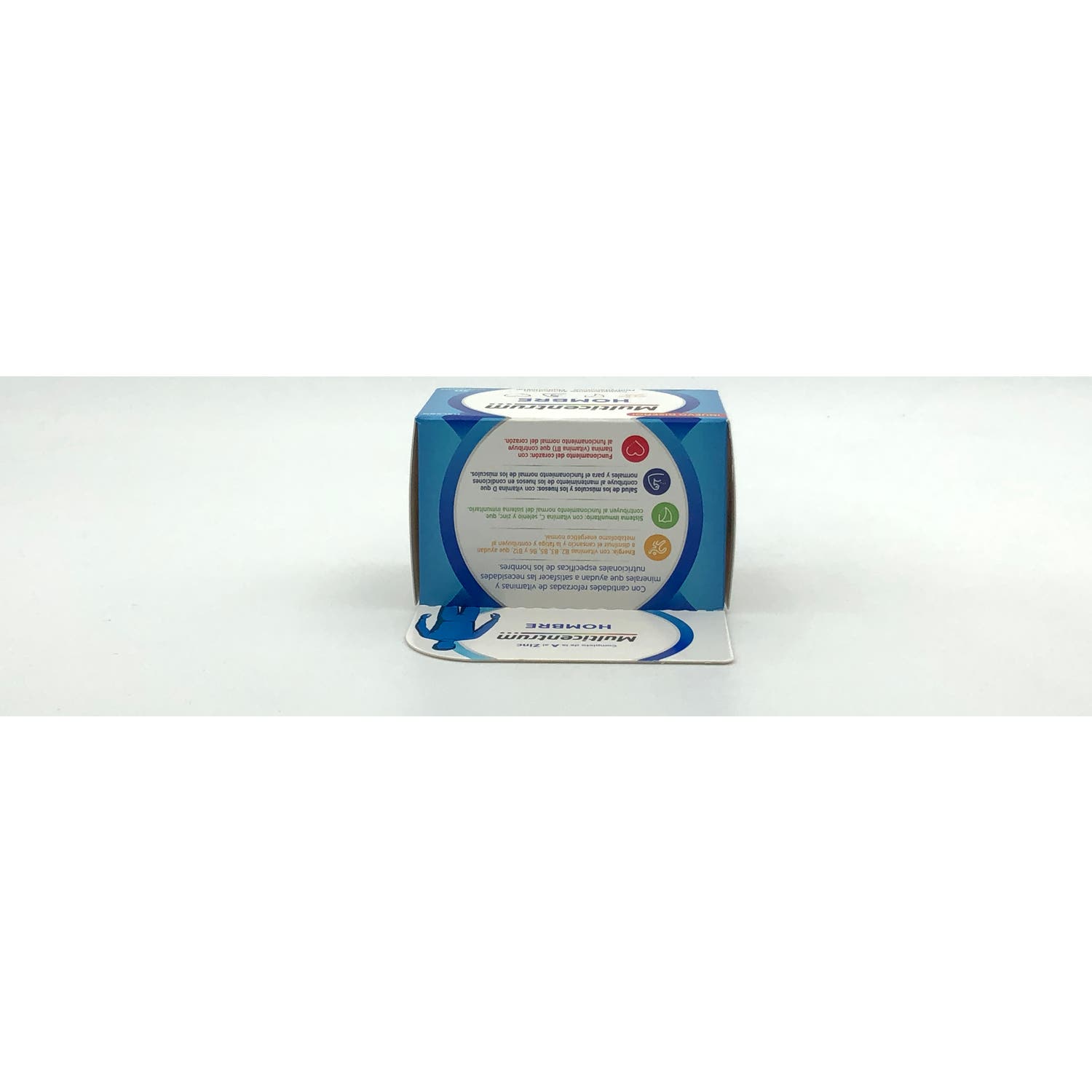 Elaborado a base de vitaminas y minerales, para las necesidades nutricionales de los hombres. Formulado a base de tiamina, biotina, vitaminas C, B2, B6, B12, K, D, selenio, zinc, magnesio, fósforo, niacina y ácido pantoténico. Además, contiene hierro, que ayuda a mantener el metabolismo energético normal.