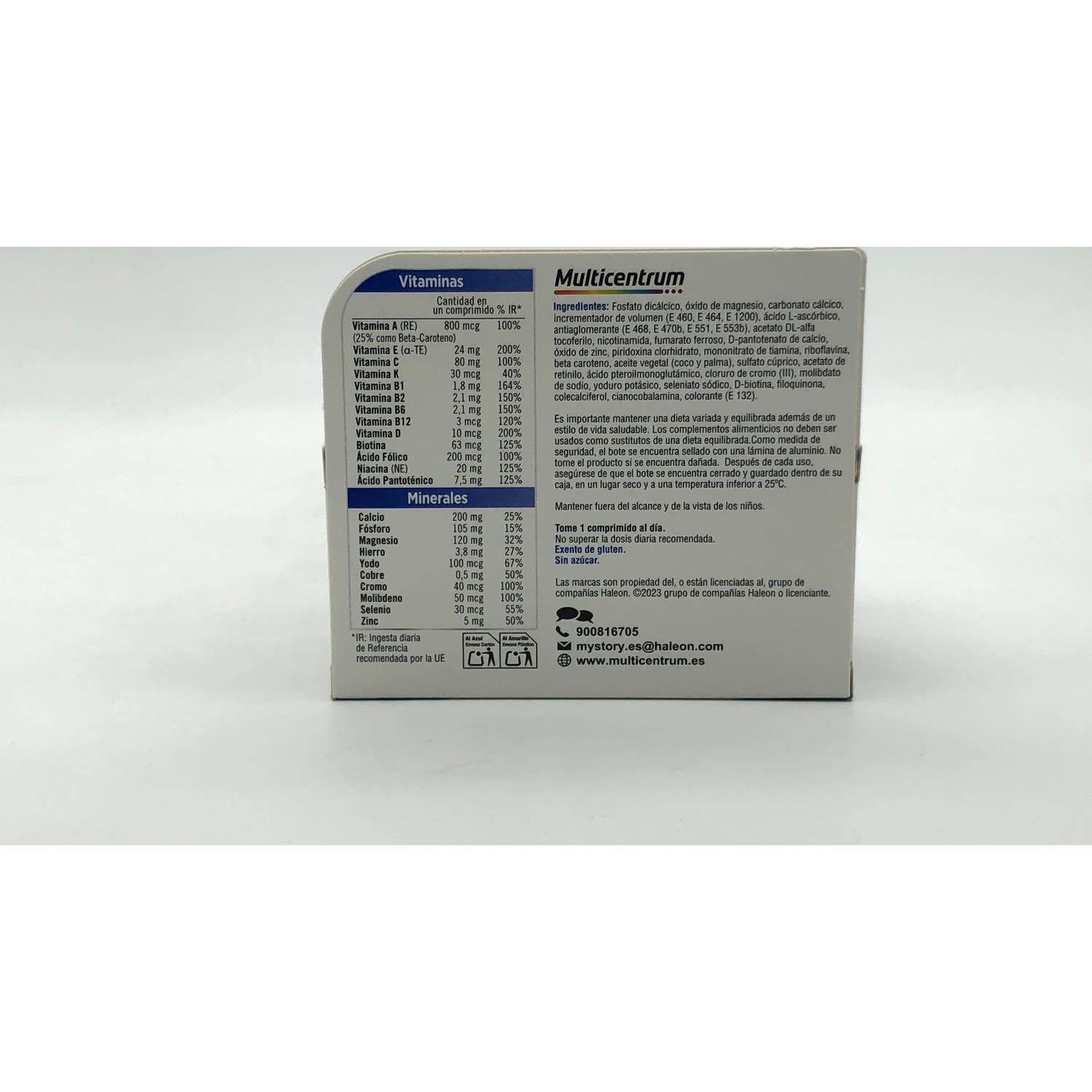Multicentrum Hombre es un aliado para la salud masculina, proporcionando soporte nutricional específico, liberando energía, fortaleciendo el sistema inmunitario y mejorando la salud muscular. Este producto es sin gluten ni azúcar y se recomienda tomar 1 comprimido al día a partir de los 18 años. No superar la dosis diaria recomendada.