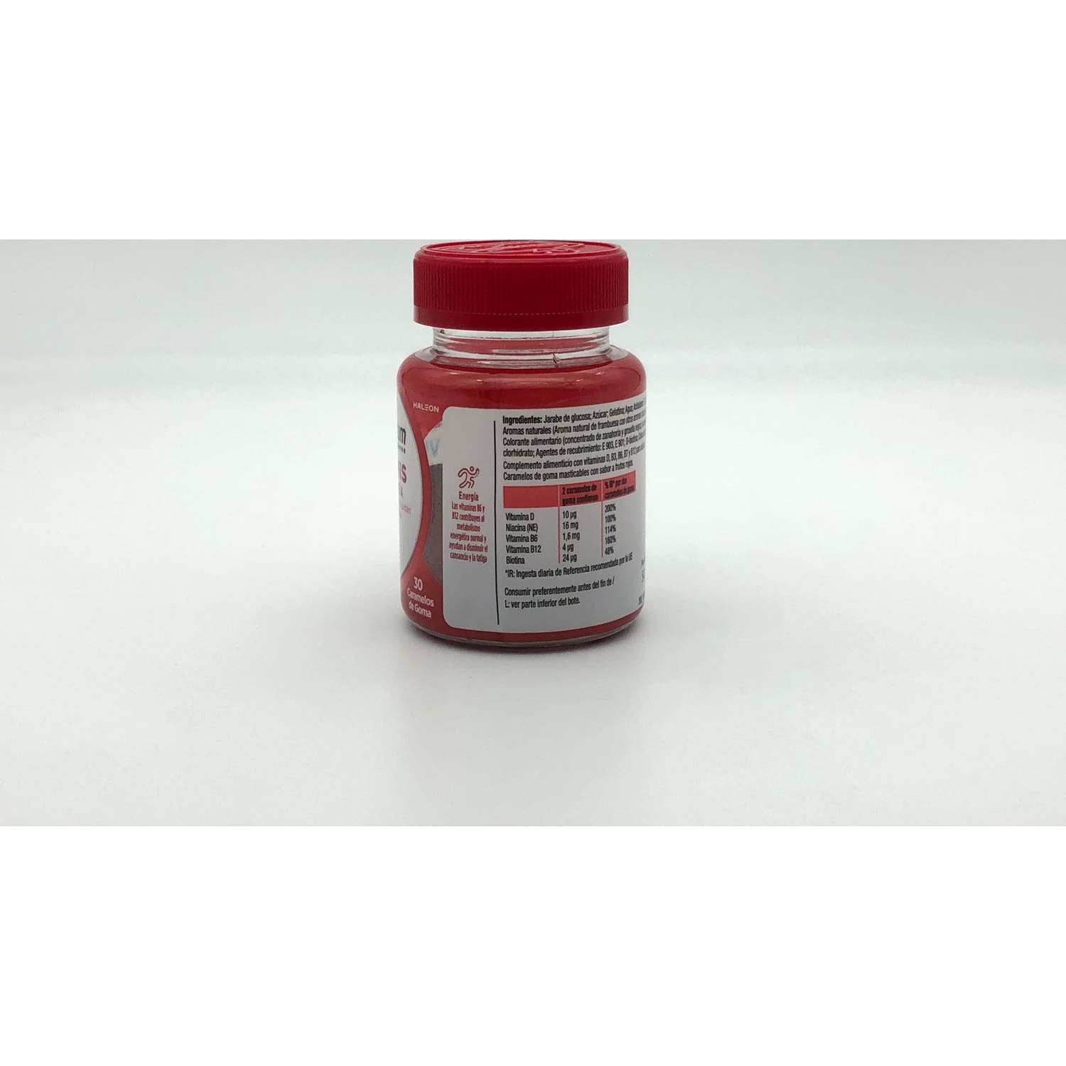 Complemento alimenticio en gominolas sabor a frutos rojos formuladas a base de vitaminas del grupo B. Favorece el funcionamiento energético normal ya que ayuda a prevenir los signos de fatiga y cansancio.