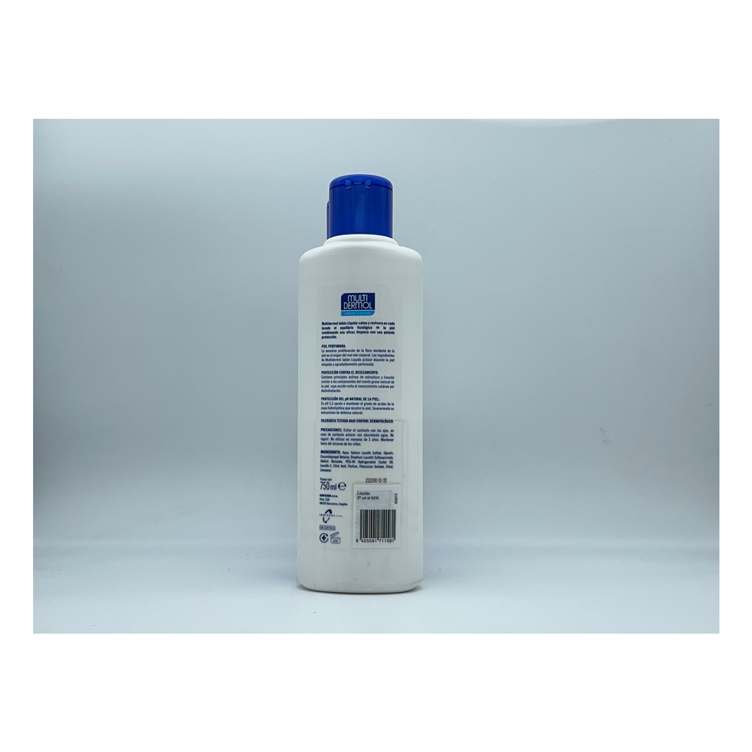 Pack de dos jabones líquidos de Multidermol. Cada uno contiene 750ml. El jabón activa y regenera el equilibrio fisiológico de la piel, porque limpia eficazmente y contiene un dermoprotector. Además, tiene una acción desodorante, que permanece entre lavados, gracias a que sus componentes evitan la aparición excesiva de proliferación de la flora en la piel.