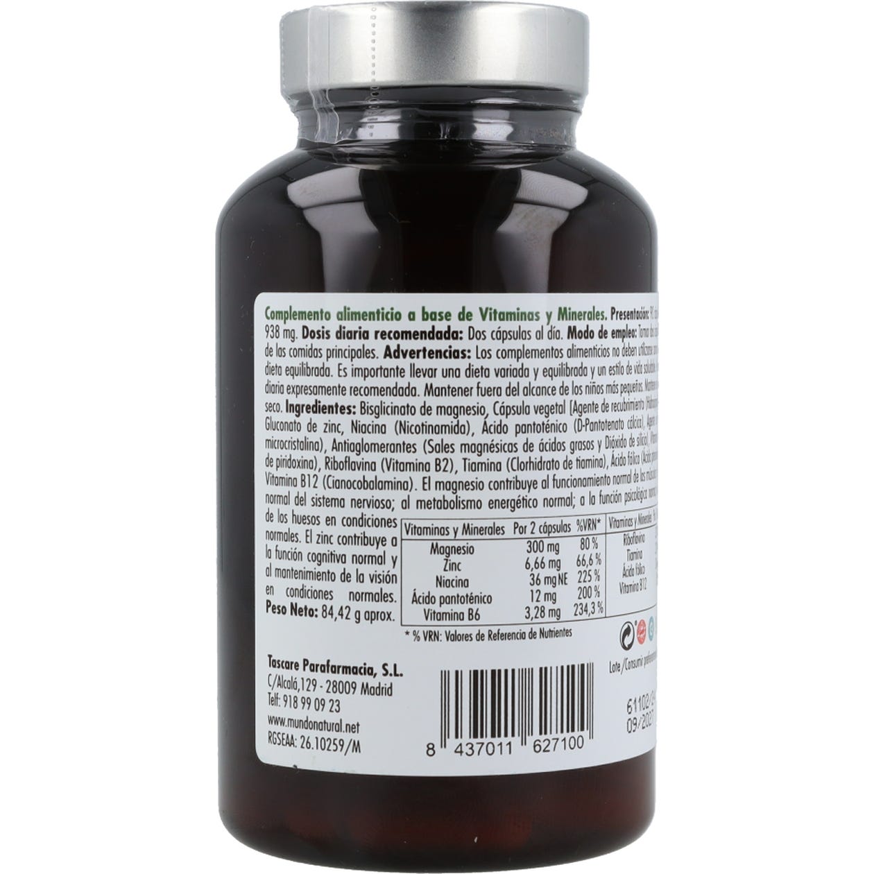 MundoNatural Tendiplus® 90 Cápsulas es un complemento alimenticio a base de magnesio y vitaminas del complejo B y Zinc que contribuye a la relajación neuromuscular en casos de contracturas, dolores articulares y cervicales por estrés muscular.
