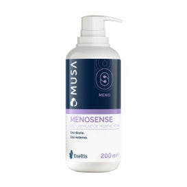 Musa Menosense es un gel cremoso de higiene íntima que calma e hidrata respetando el microbioma y ayuda a mantener el pH fisiológico de la zona para mujeres en etapa menopaúsica.
