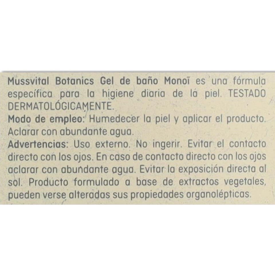 Mussvital Botanics Gel Baño Monoï 100 ml es un gel de baño nutritivo que destaca por su fragancia exótica, inspirada en el tradicional aceite de Monoï de la Polinesia. Este producto está diseñado para la higiene corporal diaria, proporcionando una limpieza efectiva sin resecar la piel y respetando su barrera natural. Después del uso, deja una agradable sensación de suavidad y confort.