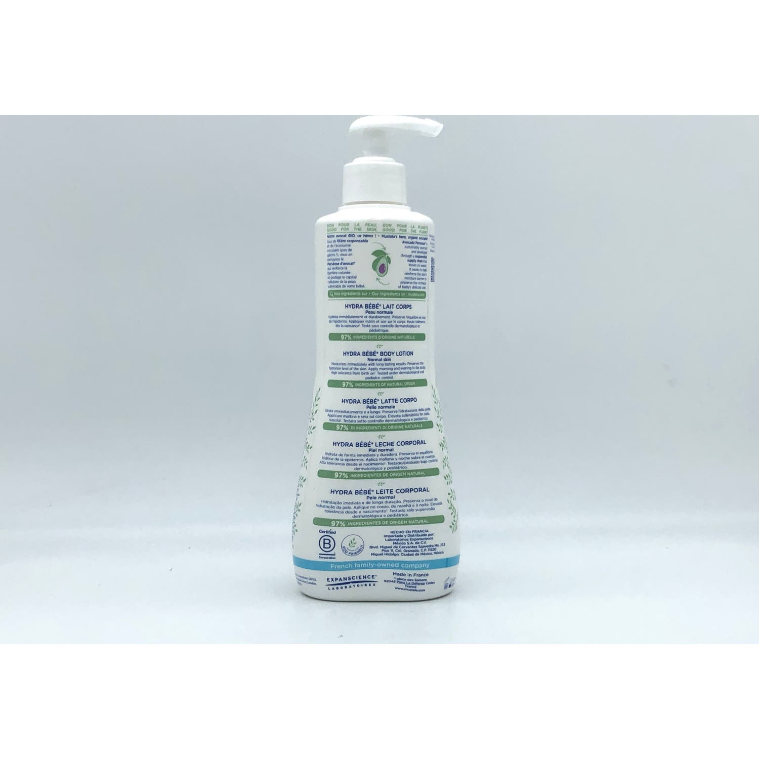 Mustela Hydra Bebé Leche Corporal Con Aguacate Bio 500ml es una leche corporal infantil que ayuda a hidratar y nutrir la piel del bebé desde el nacimiento.