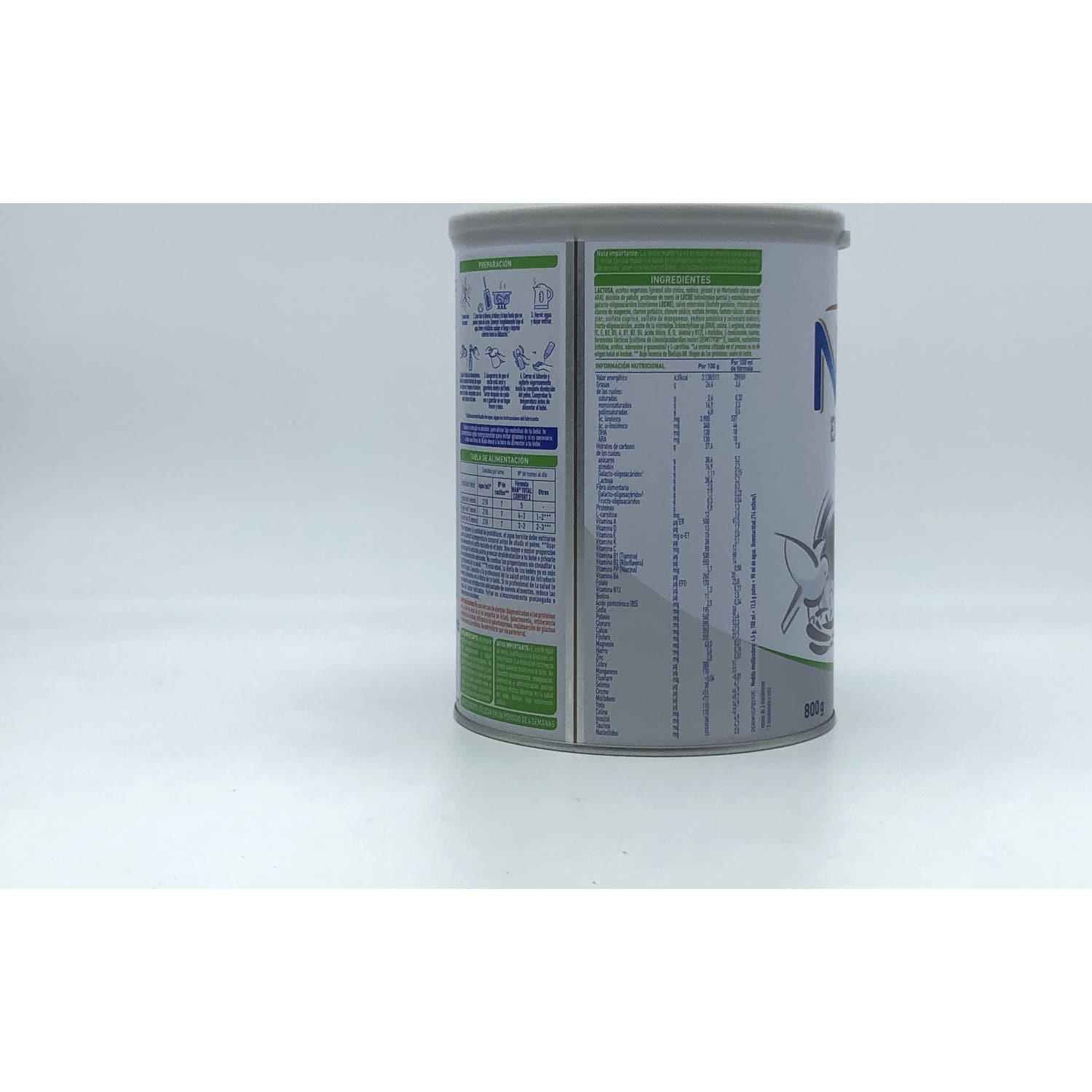 LACTOSA, aceites vegetales (girasol alto oleico, nabina, girasol y de Mortierella alpina rico en ARA), almidón de patata, proteínas de suero de LECHE hidrolizadas parcial y enzimáticamente*, galacto-oligosacáridos (contienen LECHE), sales minerales (fosfato potásico, citrato cálcico, cloruro de magnesio, cloruro potásico, cloruro sódico, sulfato ferroso, fosfato cálcico, sulfato de zinc, sulfato cúprico, sulfato de manganeso, yoduro potásico y seleniato sódico), fructo-oligosacáridos, aceite de la microlaga Schizochytrium sp.(DHA), colina, L-arginina, vitaminas (C, E, B3, B5, A, B1, B2, B6, ácido fólico, K, D, biotina y B12), L-histidina, L-fenilalanina, taurina, fermentos lácticos [cultivos de Limosilactobacillus reuteri (DSM17938**)], inositol, nucleótidos (citidina, uridina, adenosina y guanosina) y L-carnitina.