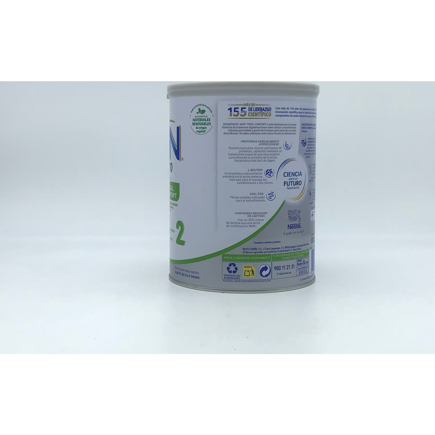 Nestlé Nan Expert Pro Total Confort 2 800g es una leche diseñada para bebés que sufren problemas digestivos leves, como cólicos o estreñimiento.