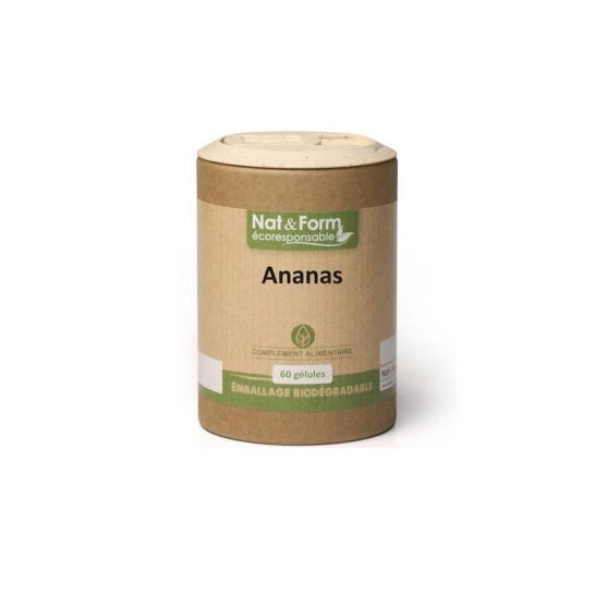 Nat&Form Eco Pineapple Gelveg60 es un complemento alimenticio diseñado para favorecer la digestión y el bienestar digestivo de manera natural. Su fórmula contiene extracto de piña, ideal para quienes buscan mejorar el confort tras comidas pesadas o digestiones lentas, contribuyendo a mantener una función digestiva adecuada.