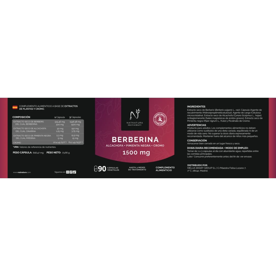 Fórmula avanzada con 1500 mg de berberina pura, cromo, alcachofa y piperina que mejora el metabolismo de la glucosa y lípidos, favoreciendo la digestión y el control del apetito.