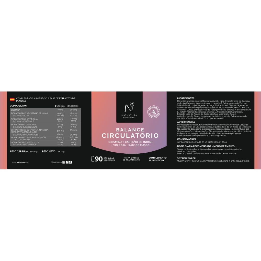 Fórmula natural con diosmina, castaño de Indias, vid roja y rusco que mejora la circulación, alivia la pesadez y reduce la hinchazón en piernas y tobillos.