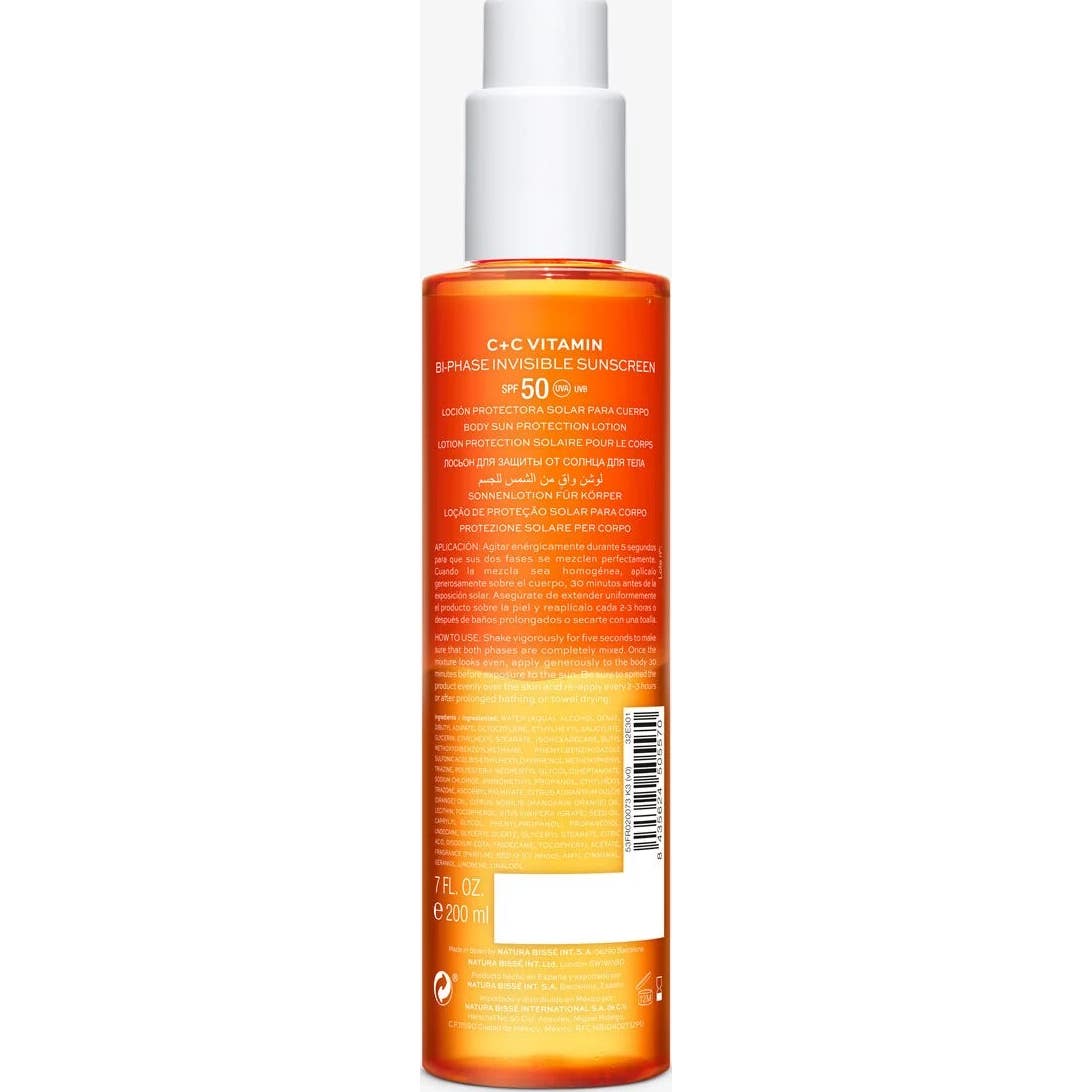 Natura Bissé C+C Vitamin Bi-Phase Invisible Spray SPF50 es un producto diseñado para ofrecer una protección solar eficaz con un factor de protección solar de 50, tanto contra los rayos UVA como UVB. Esta fórmula excepcional respeta el ecosistema marino, lo que la convierte en una opción responsable y sostenible.