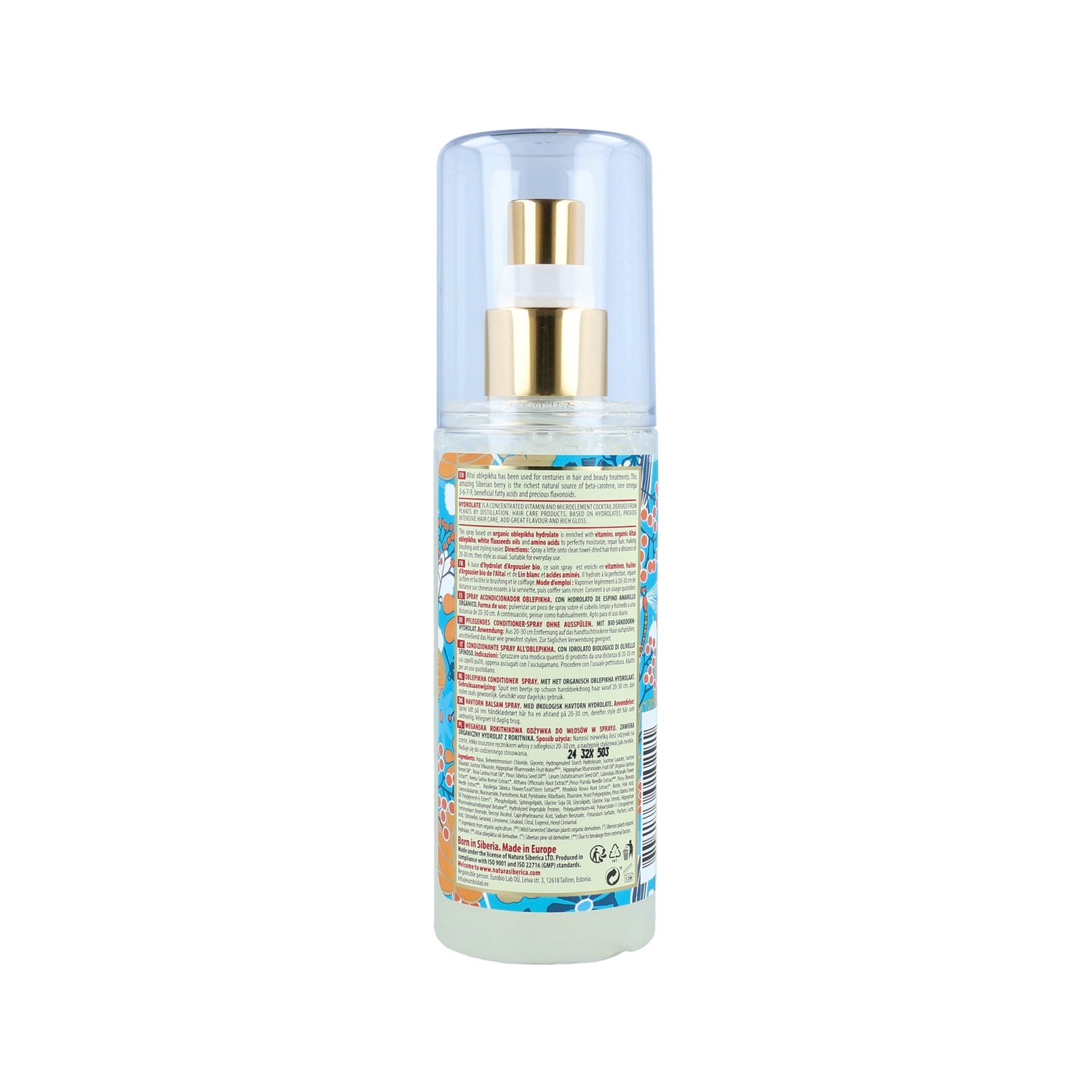 Acondicionador en formato spray que no necesita aclarado, con propiedades suavizantes y voluminizadoras. Nutre el cabello en profundidad para prevenir el encrespamiento incluso en ambientes con alta humedad. Su fórmula contiene aceite de espino amarillo de Altái orgánico y de linaza blanca, aminoácidos y vitaminas que reparan el cabello.