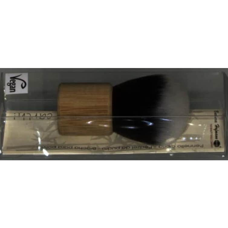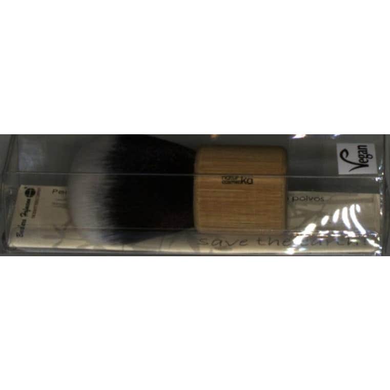 Brocha de maquillaje con cerdas densas de fibra sintética en forma semicurva, fabricada con mango de bambú ecológico. Posee una textura suave y flexible.