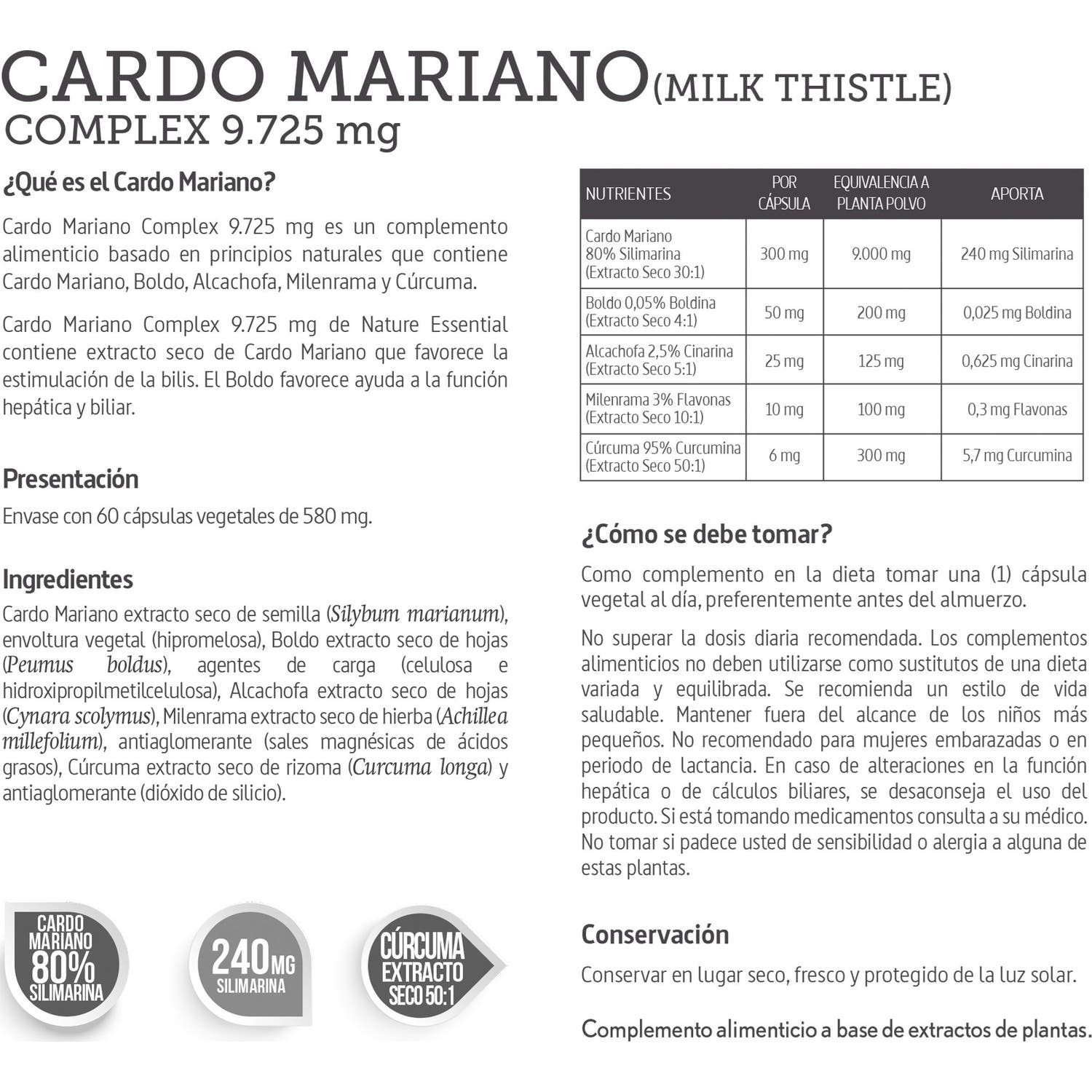 Complemento alimenticio que se encuentra formulado a base de cardo mariano, que contribuye con la síntesis de las proteínas en el hígado. Cuenta con propiedades antiflamatorias y favorece el desarrollo de nuevos tejidos para proteger este órgano de los daños que generan algunas toxinas. También potencia el glutatión, que beneficia la desintoxicación del sistema digestivo.