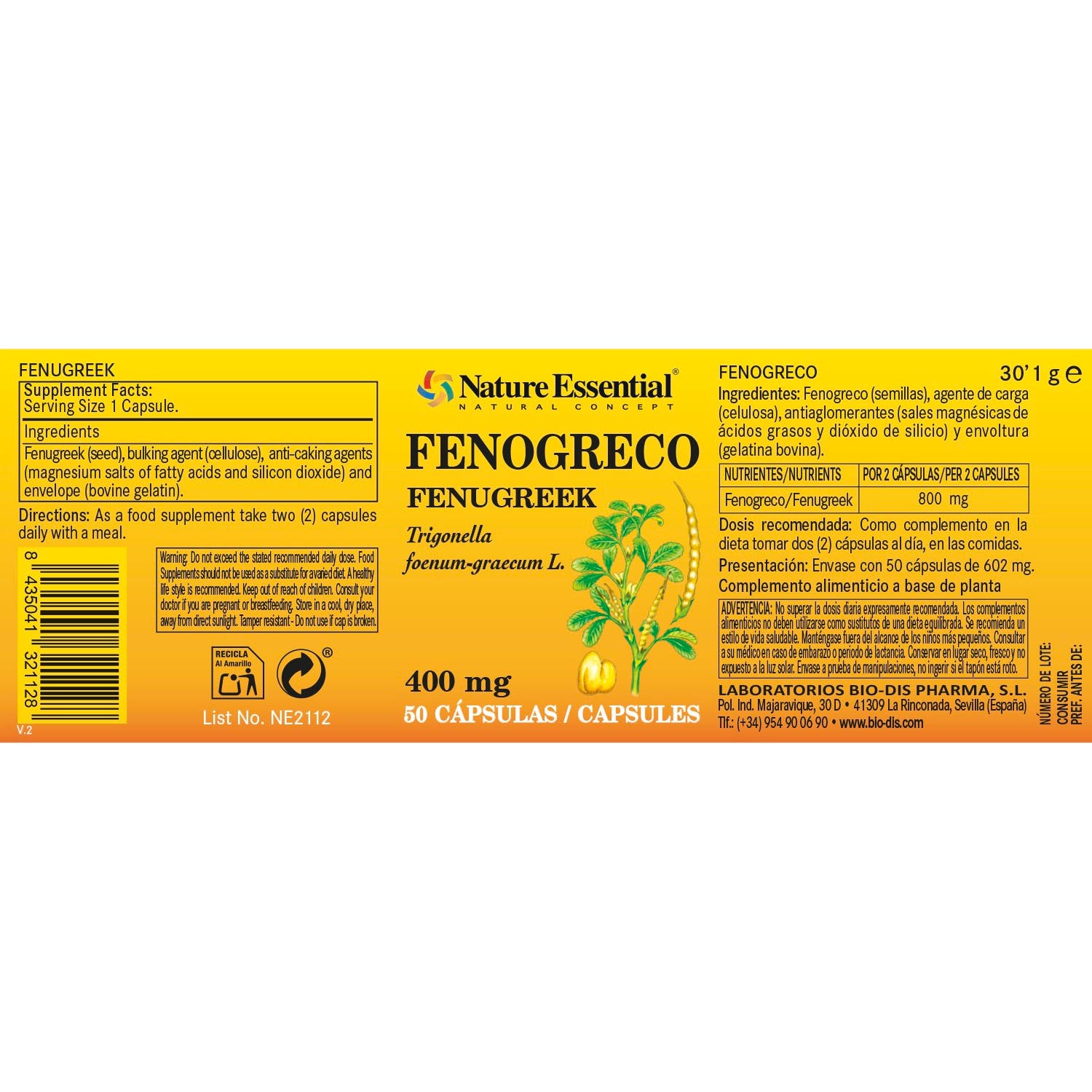 Nature Essential Fenogreco 400mg 50cap es un complemento de las comidas considerado como un “cereal” ya que comparte ciertas propiedades gastronómicas con los cereales.