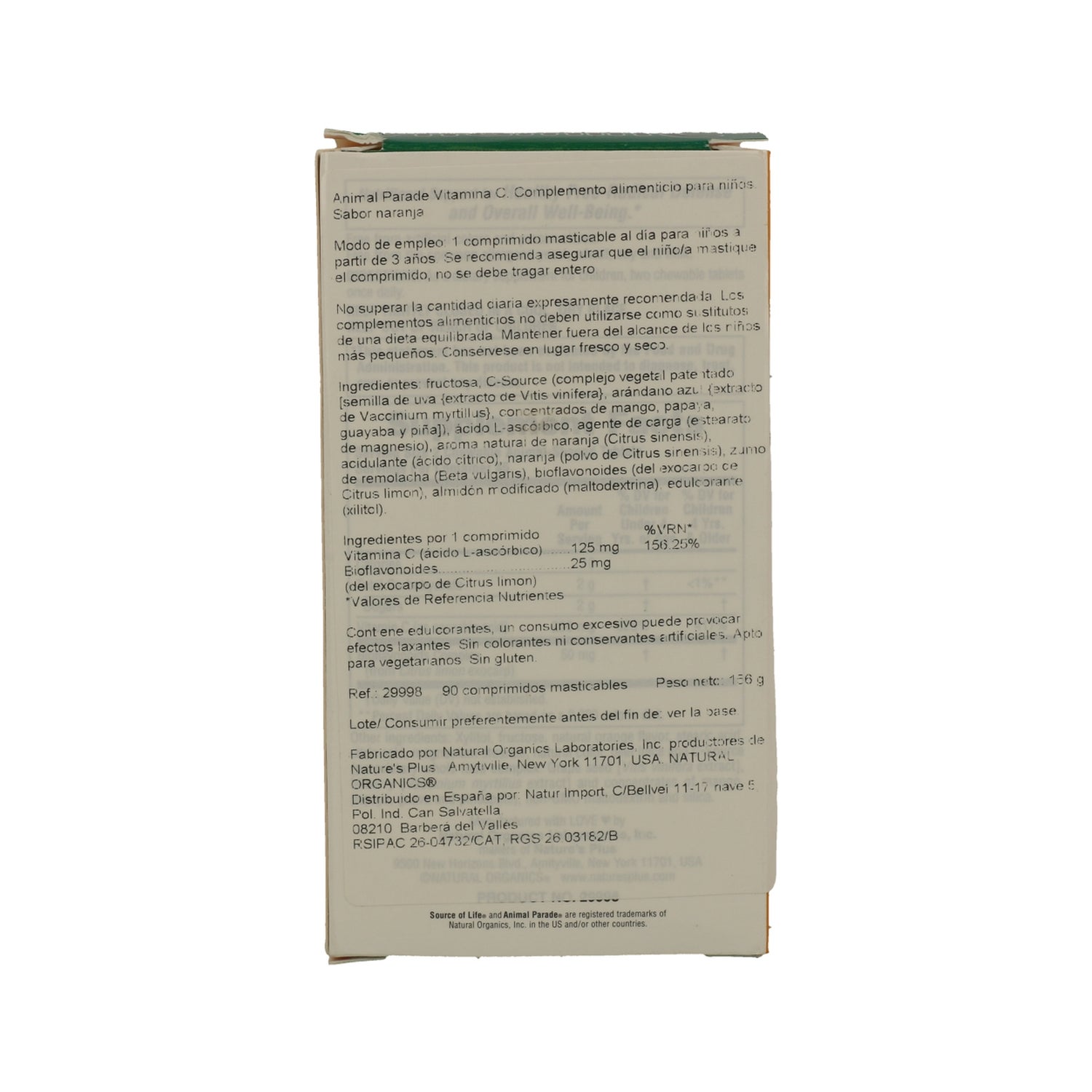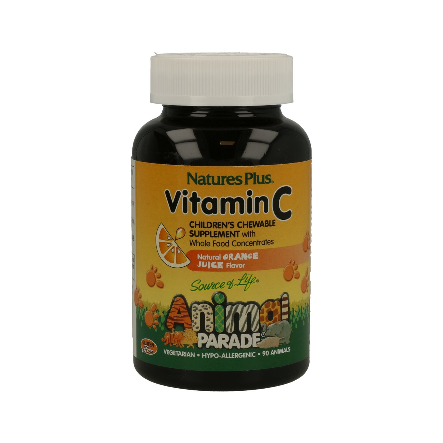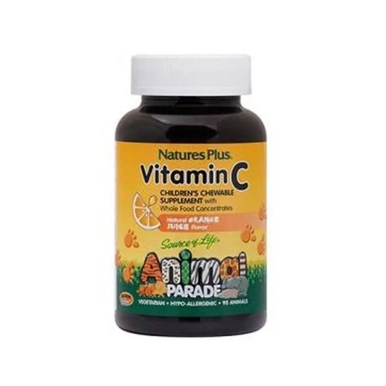 NaturesPlus Animal Parade VitaminaC 90comp son comprimidos masticables a base de vitamina C, en forma de animales, con agradable aroma y sabor a naranja, aptos para niños a partir de 4 años.