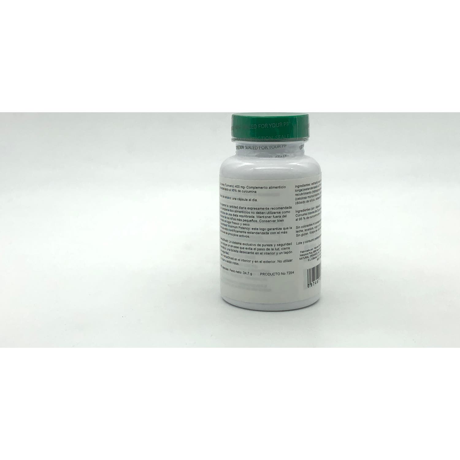 Por cápsula: 400 mg de cúrcuma (380 mg de curcumina).