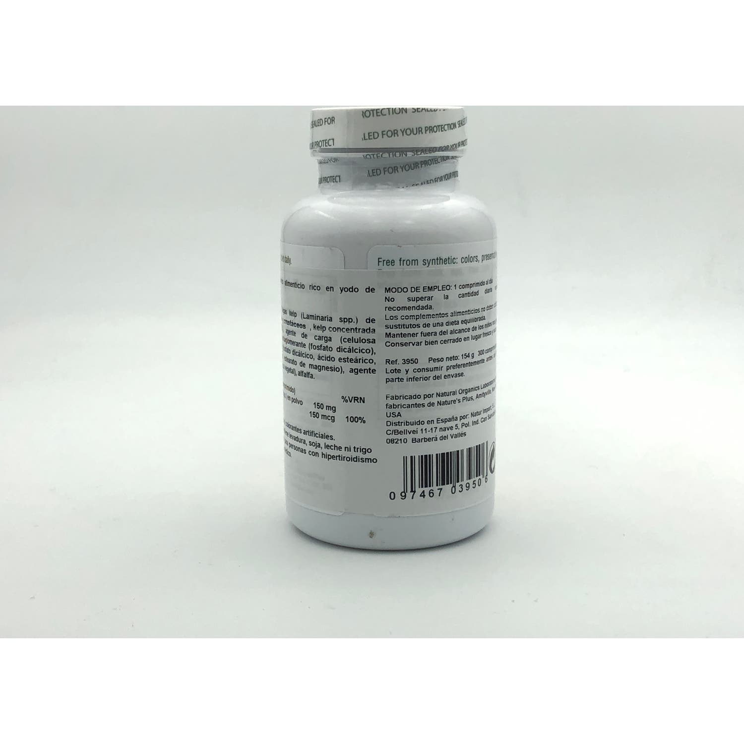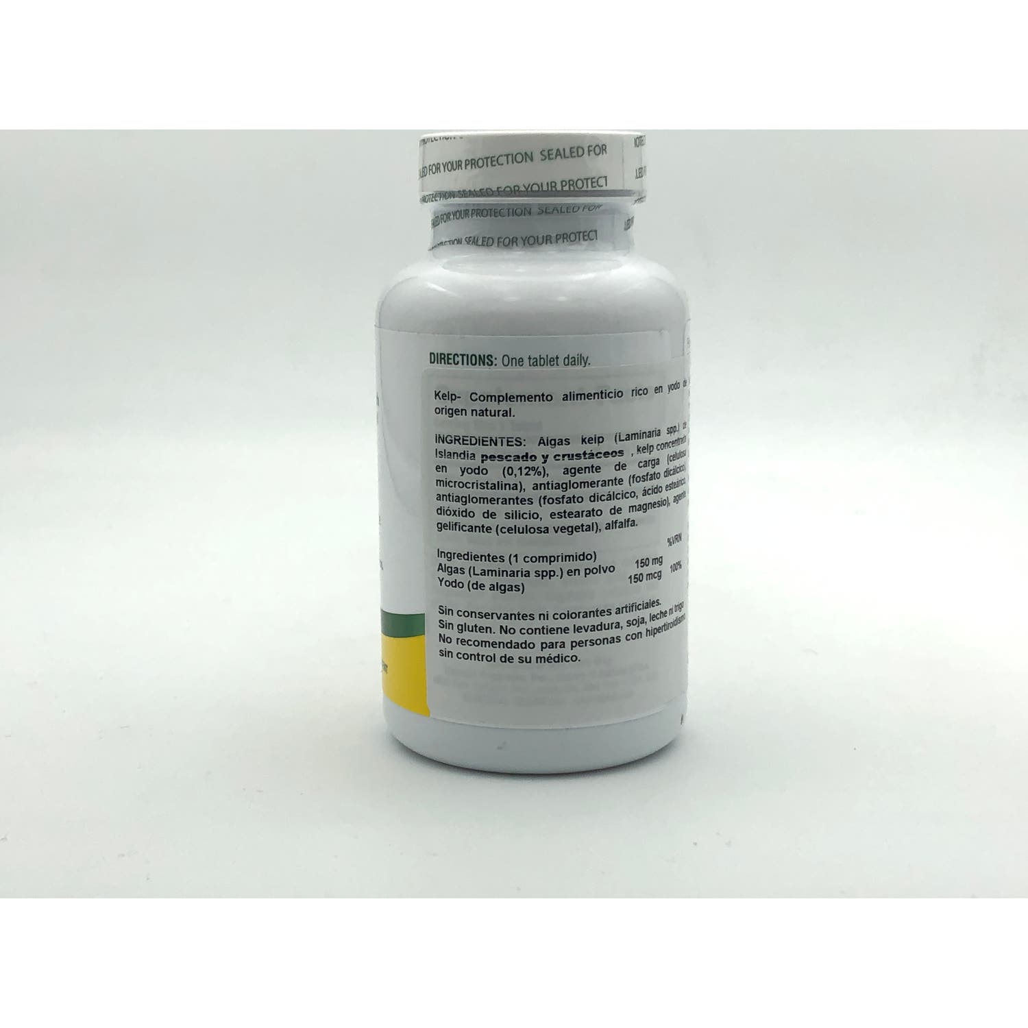 Por comprimido: 300 mg de algas Kelp (de Nueva Escocia y del Pacífico) (150 mcg de yodo).