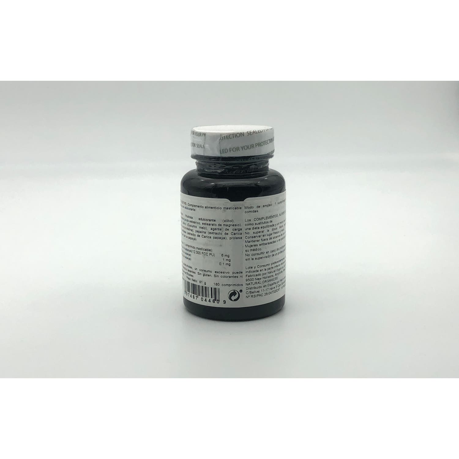 Elaborado a base del fruto maduro y las hojas de la papaya, proporcionando 6 mg de papaína que aporta propiedades de la enzima de papaya, que da soporte a la digestión de proteínas y atenuar las flatulencias.