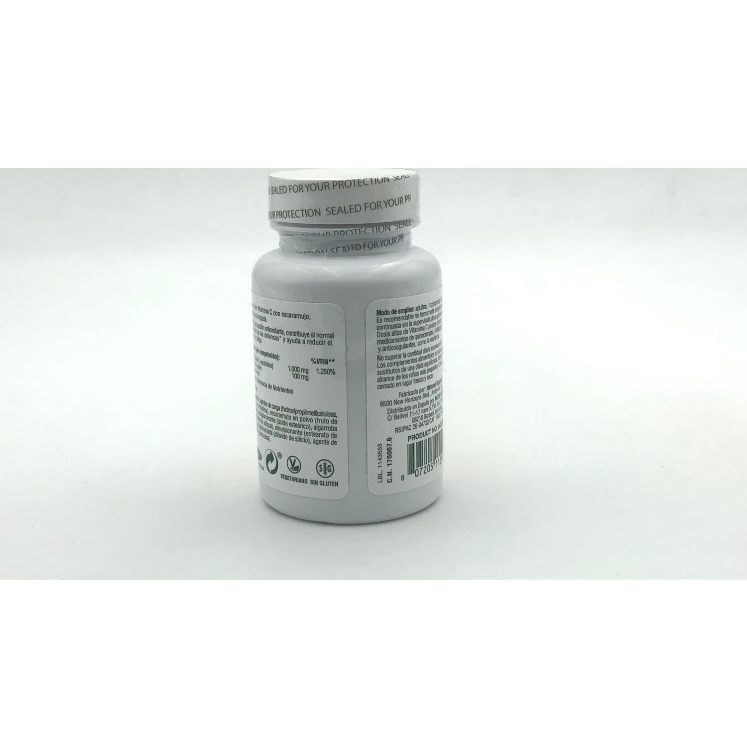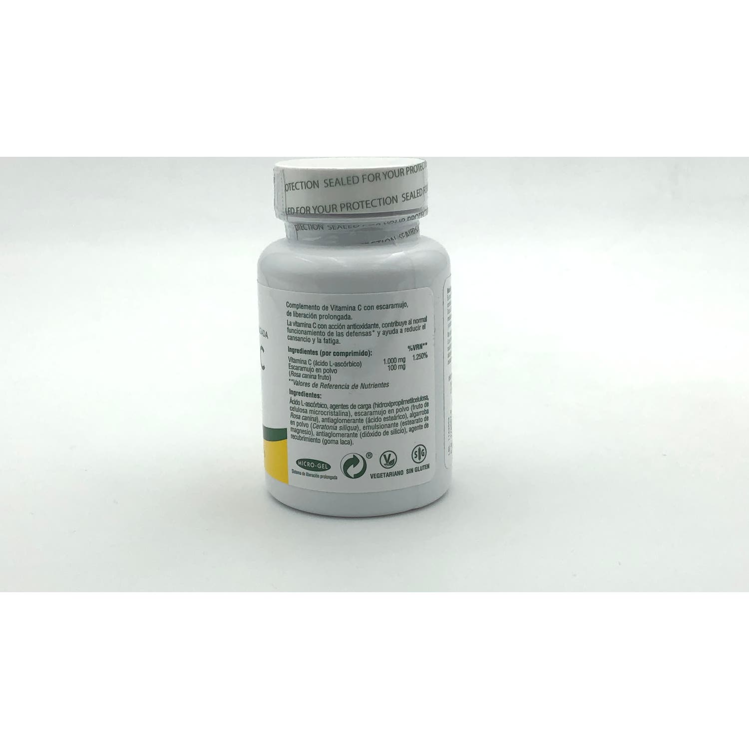 NaturesPlus Vitamina C 1000mg 60comp es un suplemento alimenticio que contiene vitamina C y escaramujo.