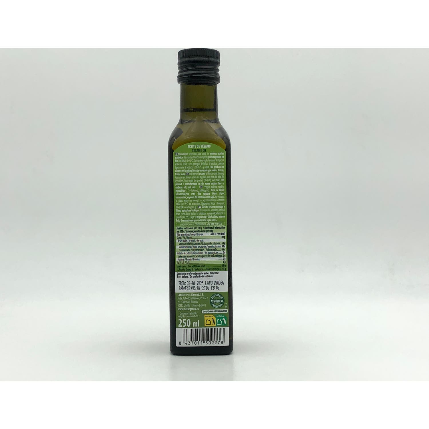 Naturgreen Aceite Ecológico De Sésamo 250ml aceite de sésamo 100% de cultivo ecológico, obtenido de primera presión en frío. El sésamo tiene múltiples beneficios para la salud.