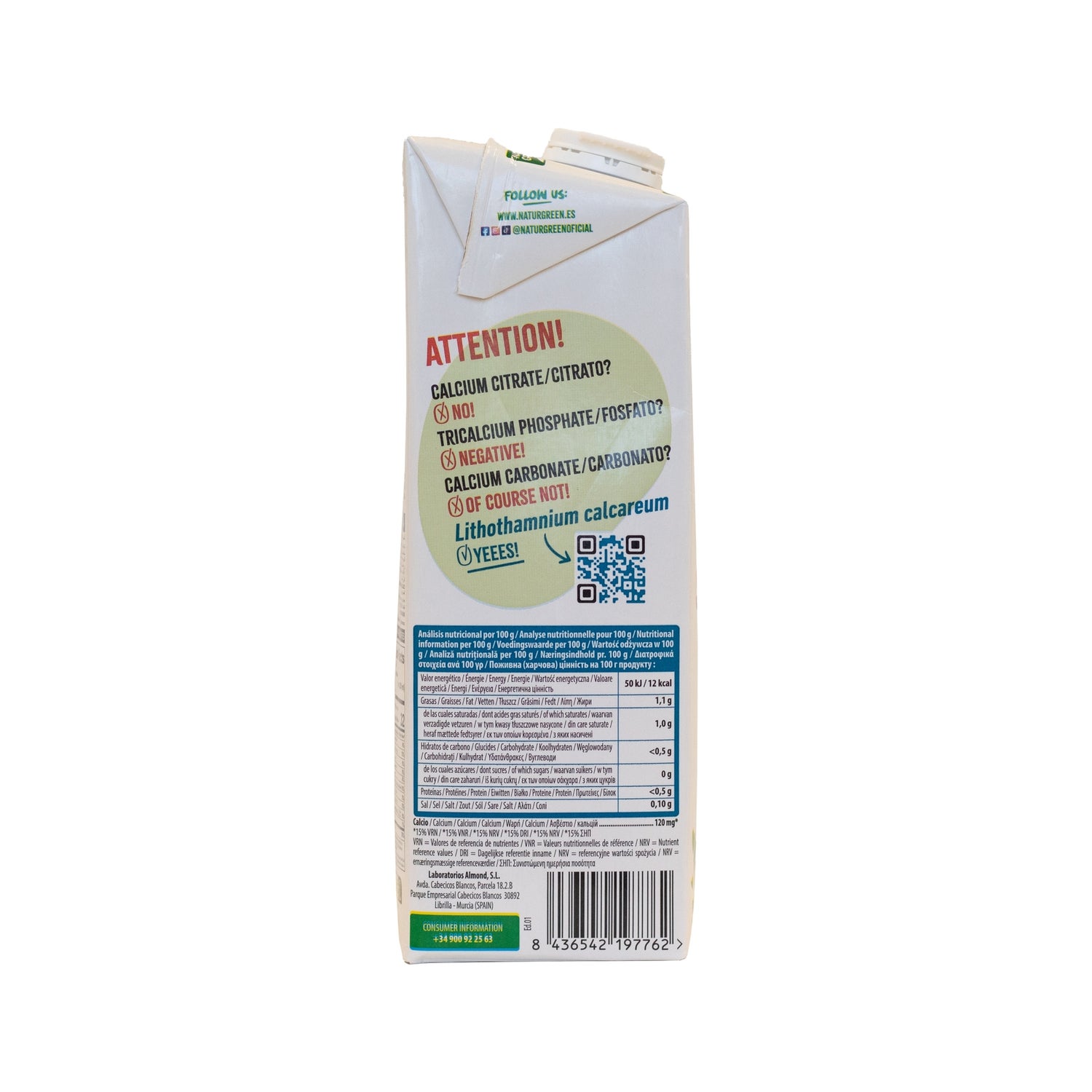 Leche vegetal con alto contenido en calcio