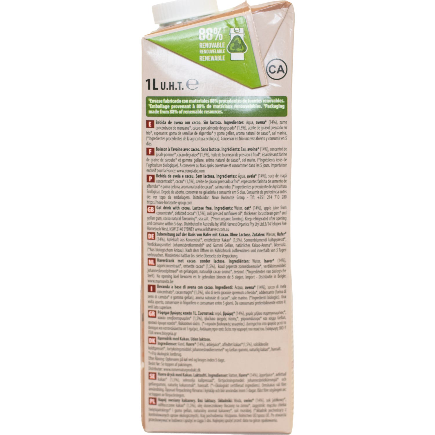 Naturgreen Bebida Ecológica De Avena Y Cacao Con Calcio 1l bebida de avena con sabor a cacao que nos aporta calcio. El producto se presenta en un brick de litro y es 100% natural. Ideal para una dieta saludable, personas que quieran sustituir las leches animales y que les gusta comer sano.
