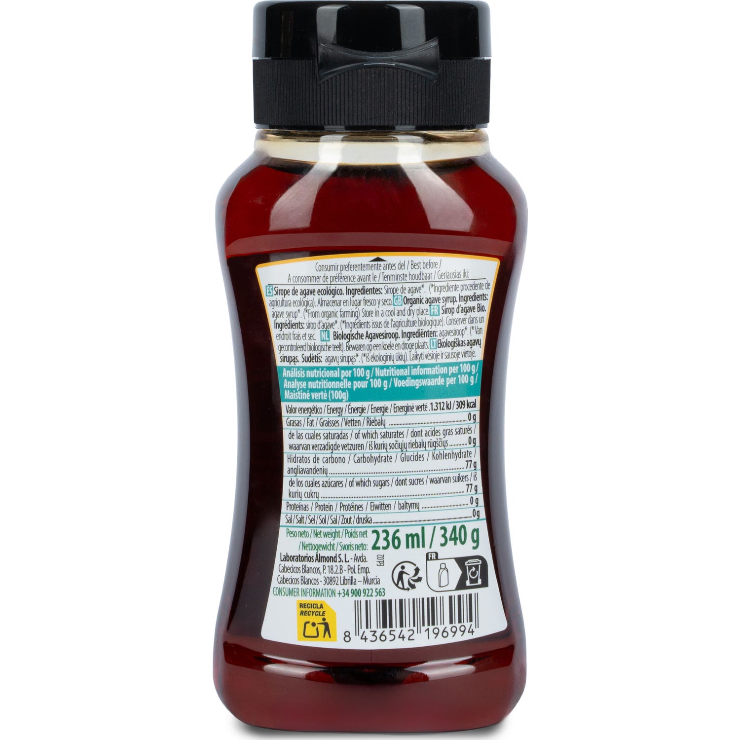 Sirope de agave crudo 100% natural adecuado para endulzar orgánicamente todo tipo de bebidas y comidas. Obtenido a partir de la savia líquida extraída del interior de la penca del agave azul a bajas temperaturas. Es fuente natural de fibras dietéticas solubles, que ayudan a mantener la adecuada eliminación de las grasas y toxinas. También favorece el alivio de posibles irritaciones en el colon. Contribuye al buen funcionamiento del sistema intestinal, protegiendo la microbiota natural. Contiene hierro, fósforo, proteínas, niacina, vitaminas A, B, B2 y C. Promueve la absorción del calcio y del magnesio. Libre de gluten y es bajo en calorías.
