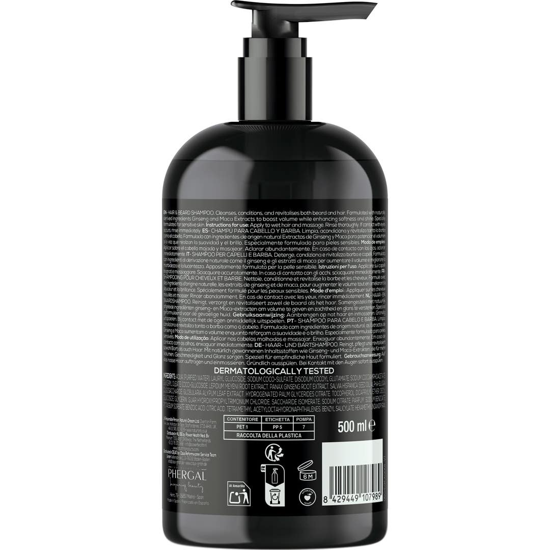 Limpia en profundidad sin resecar ni alterar el equilibrio natural. Hidrata desde la raíz y ayuda a reforzar el microbioma del cuero cabelludo y la piel de la barba. Ofrece: