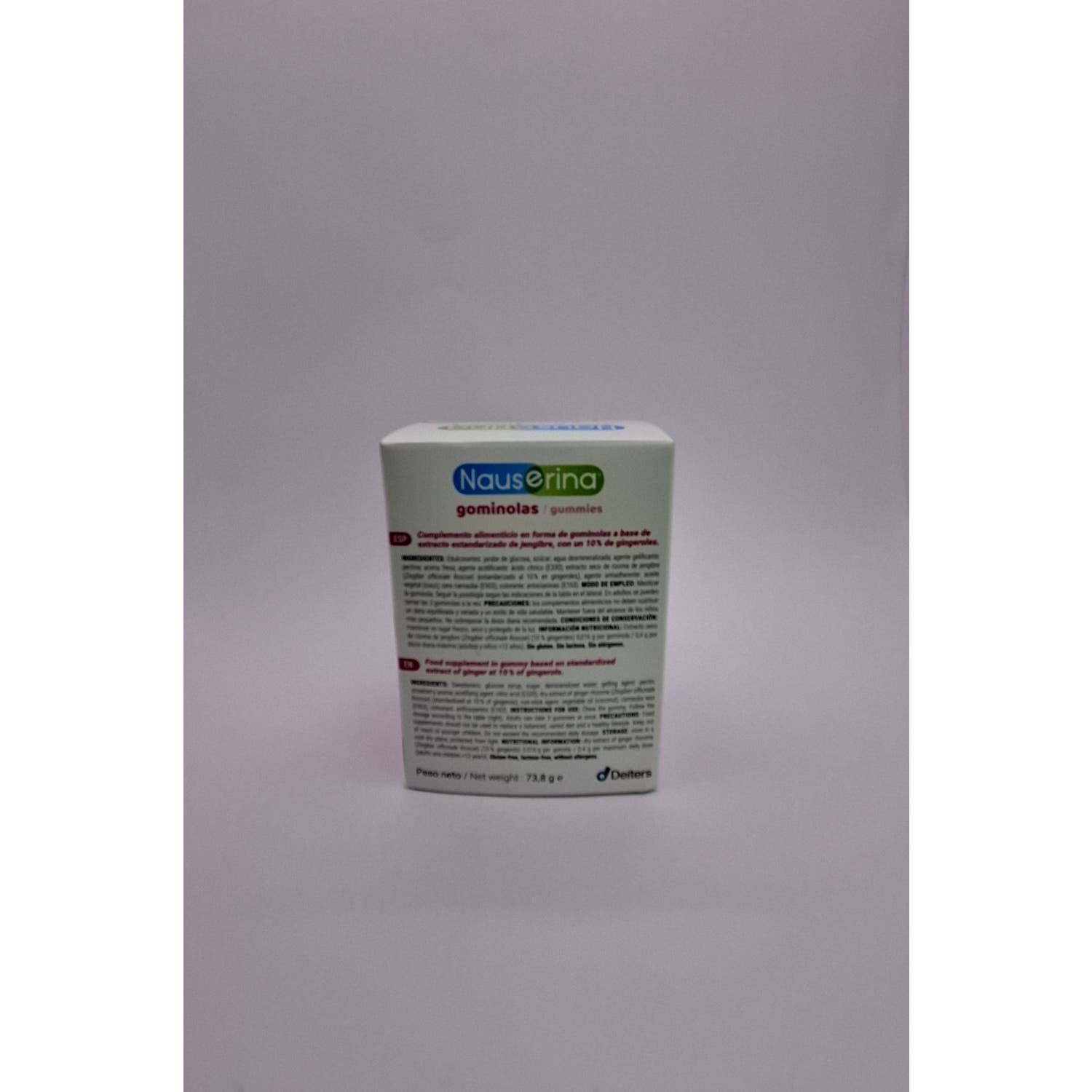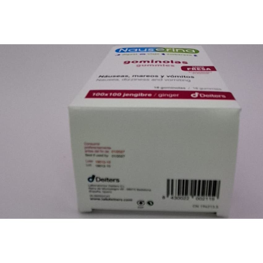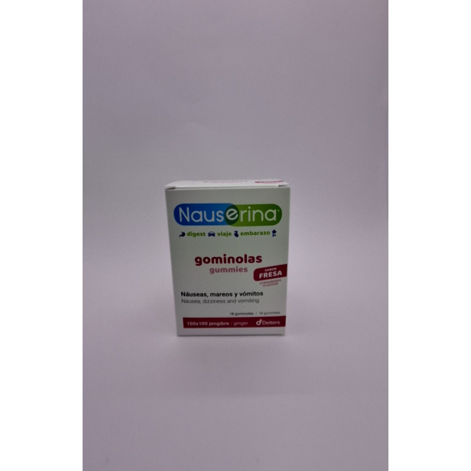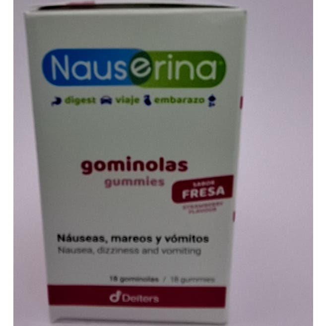 Nauserina 18 gominolas es un complemento alimenticio a base de extracto de jengibre. Ideal para reducir y prevenir la sensación de náuseas, mareos y vómitos asociados a viajes, digestión y embarazo.