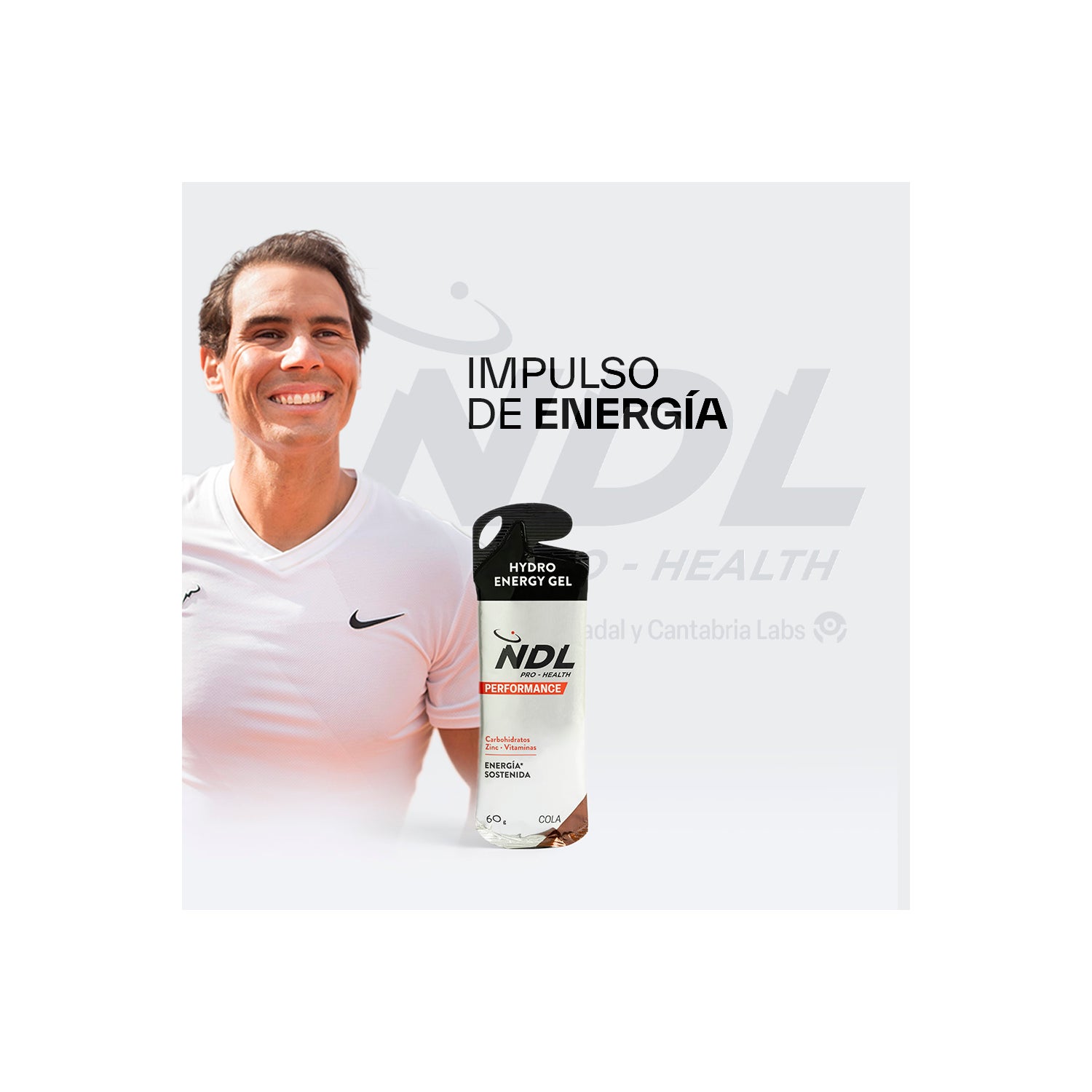 NDL Pro-Health gel energético sin cafeína Cola 12x 60gr es un complemento alimenticio de Rafa Nadal diseñado para aportar una dosis rápida de energía.