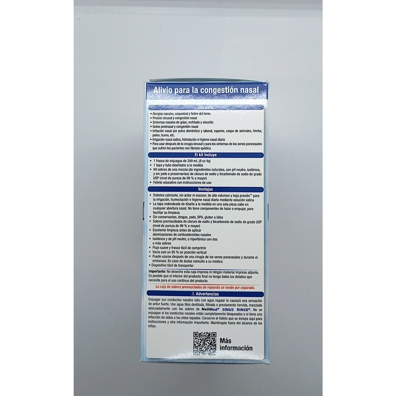 Sinus Rinse™ es una solución de higiene nasal de gran volumen y baja presión positiva, la forma más efectiva para irrigar la nariz y mantener el cuidado nasal. También limpia los alérgenos, irritantes, las bacterias y los virus de la nariz, reduciendo la frecuencia de la infección. Además, ayuda a disminuir la hinchazón en la nariz y aumentar el flujo de aire. Sinus Rinse™ es excelente para todas las edades; está disponible en concentraciones isotónica, hipertónica y pediátricas.