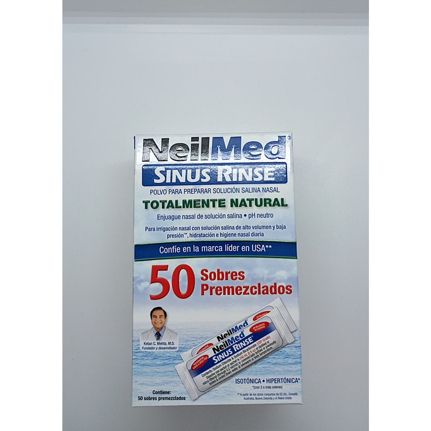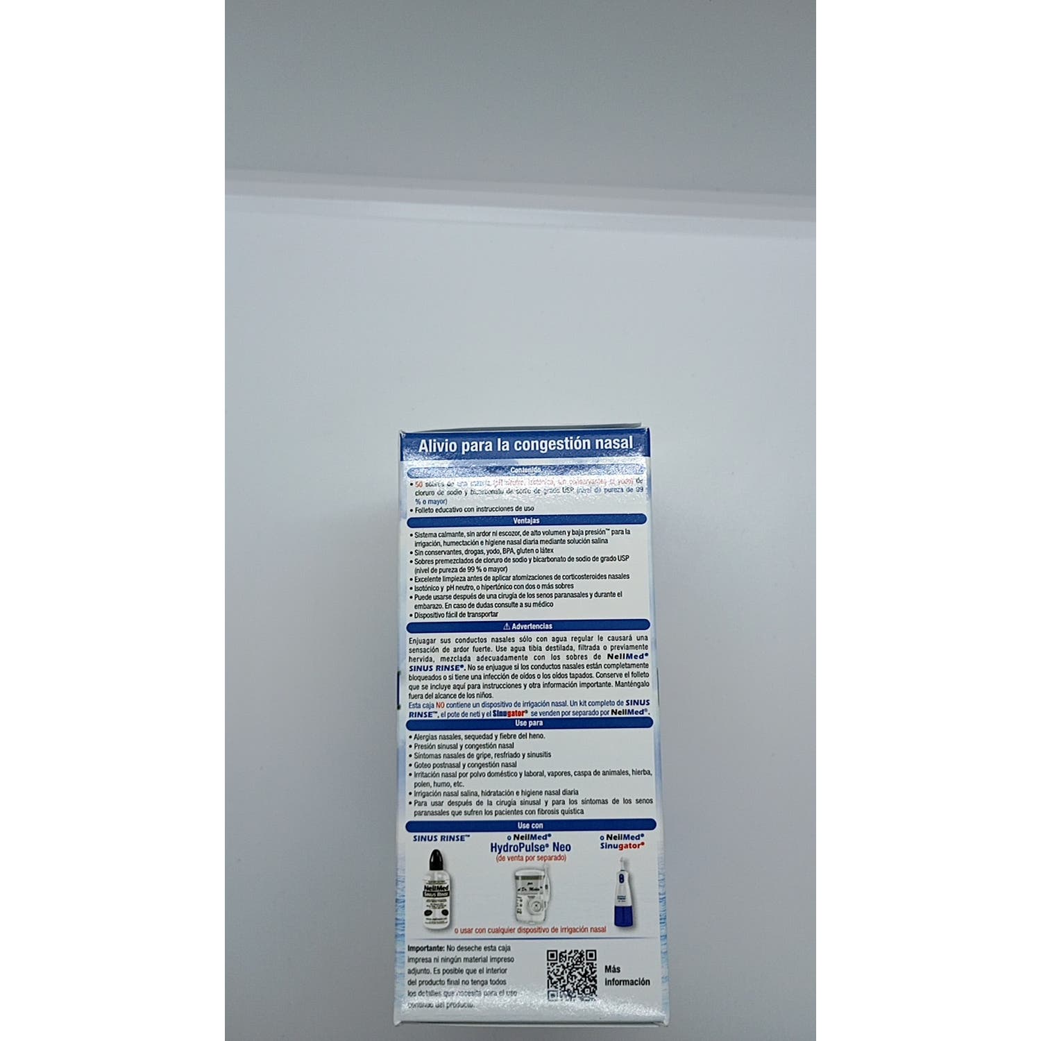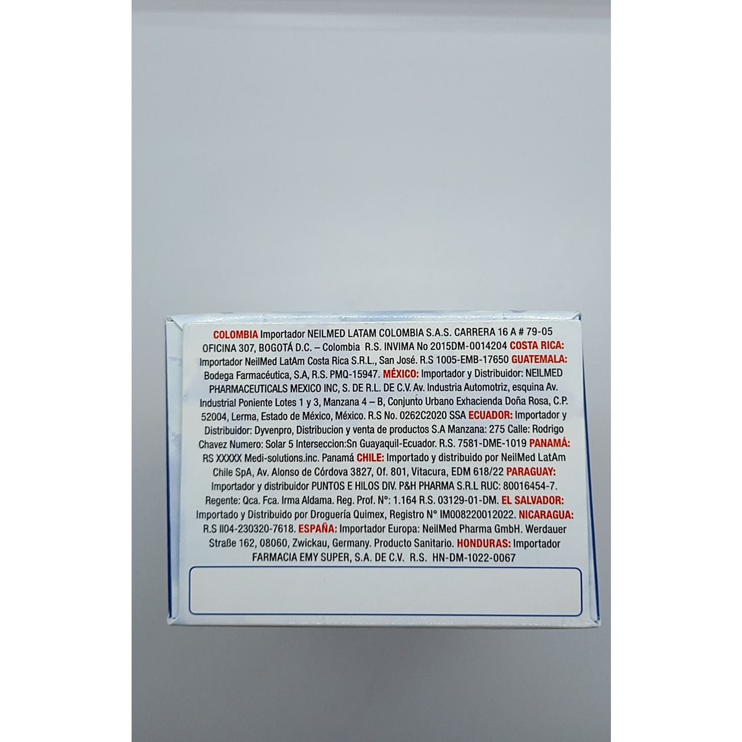 – 50 sobres con mezcla de pH equilibrado de cloruro de sodio y bicarbonato de sodio (grado USP, ingredientes naturales, isotónico y libre de yodo)