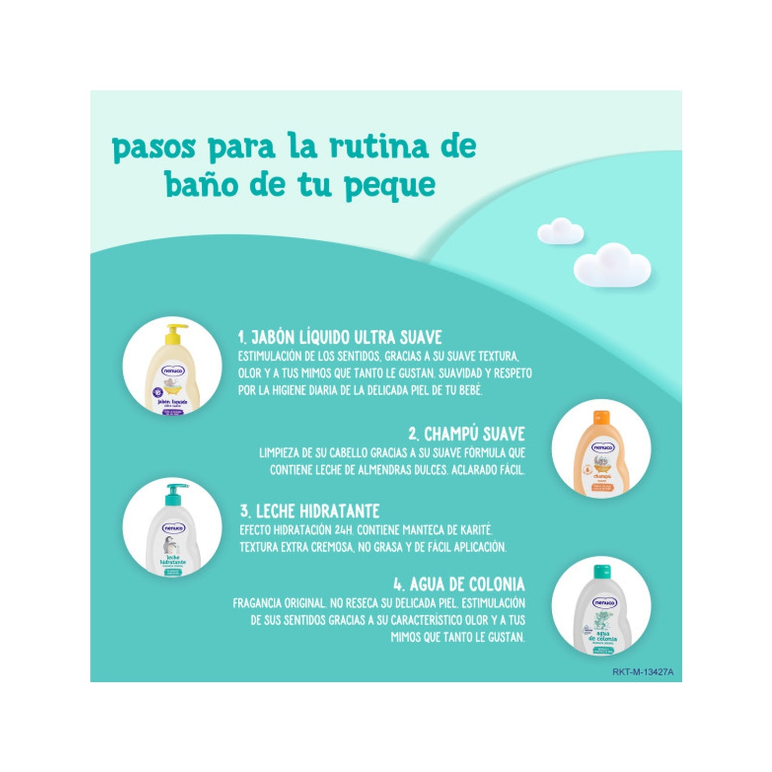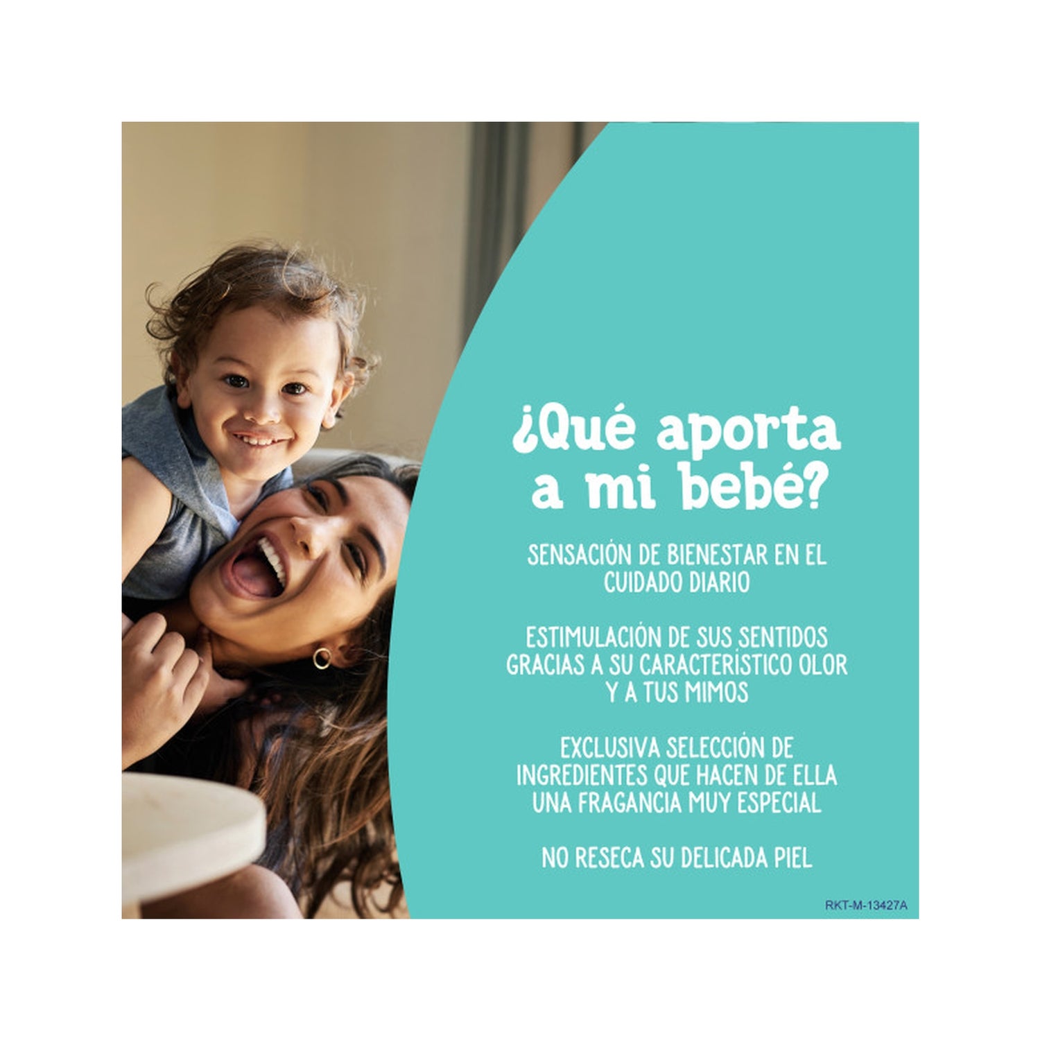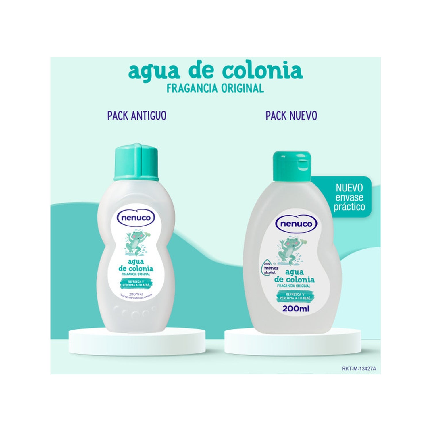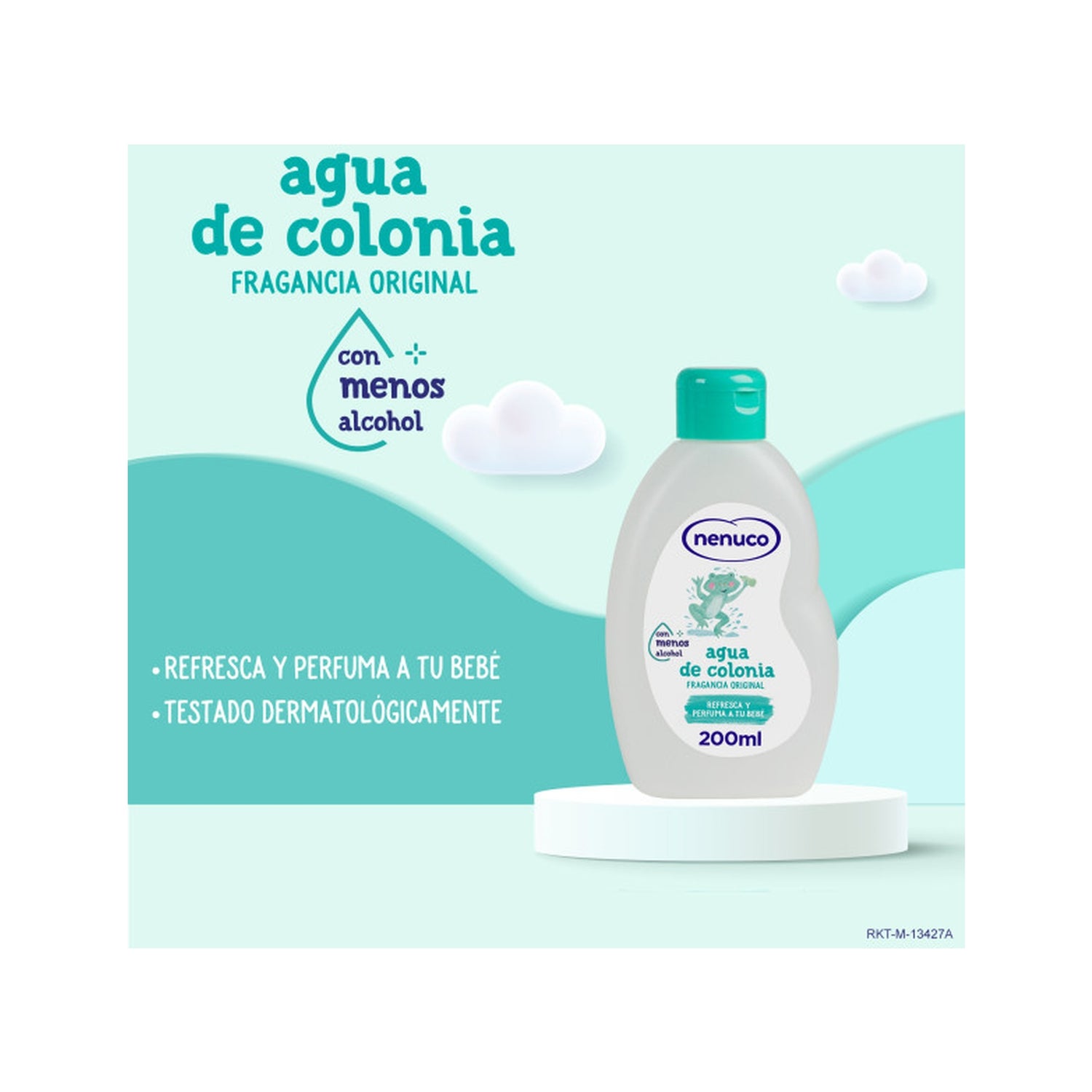 El agua de colonia con una fragancia suave de Nenuco está elaborada con ingredientes naturales selectos, que crean un aroma único y original muy especial para los pequeños. Posee un pH neutro que mantiene la suavidad natural de la piel del bebé y le aporta bienestar en el cuidado diario desde su nacimiento. Tiene una fórmula hipoalergénica desarrollada para minimizar el riesgo de alergias y resequedad. No irrita pieles muy sensibles porque está probado bajo un estricto control dermatológico. Es una fragancia muy especial que aporta un aroma limpio y fresco, además estimula los sentidos del bebé haciendo más especial cada momento. Contribuye a la higiene y buen olor de los más pequeños. Nenuco es una marca para el cuidado del bebé que segura la calidad e idoneidad de sus producto.