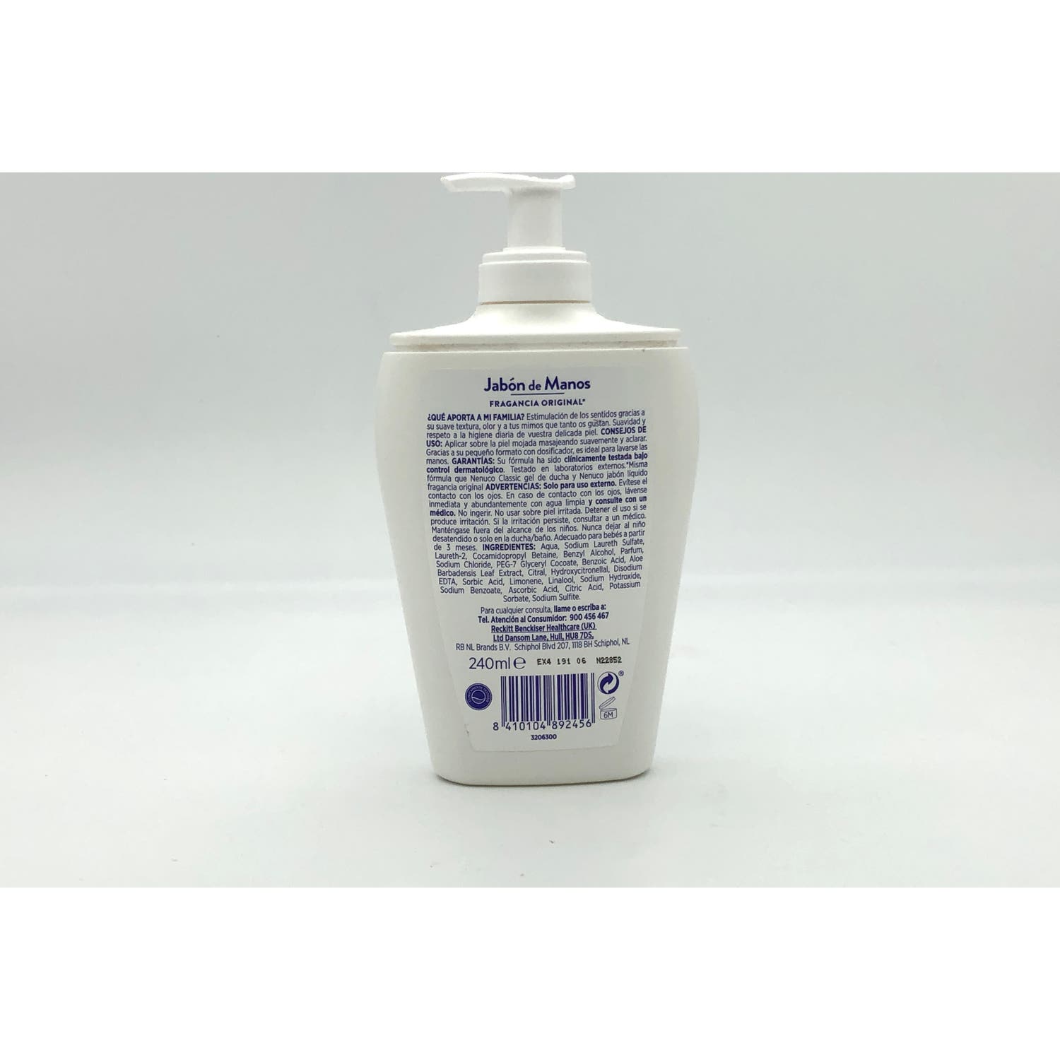 Este producto de Nenuco es un jabón para manos de la línea "Classic" de la marca. Además de su poder para limpiar y desinfectar las manos de toda la familia, el jabón incluye la tradicional fragancia de Nenuco. Está compuesto por una fórmula para adecuarse al uso de todos, que incluye ingredientes naturales. Lo pueden utilizar tanto adultos como niños, con el fin de mantener las manos libres de suciedad y microorganismos, como los virus y bacterias. Aporta suavidad a la piel. El extracto de aloe vera que lleva el jabón es capaz de hidratar la piel en profundidad. El jabón de manos debe de mantenerse alejado de los ojos. Los niños pueden utilizar este producto bajo la supervisión de un adulto.