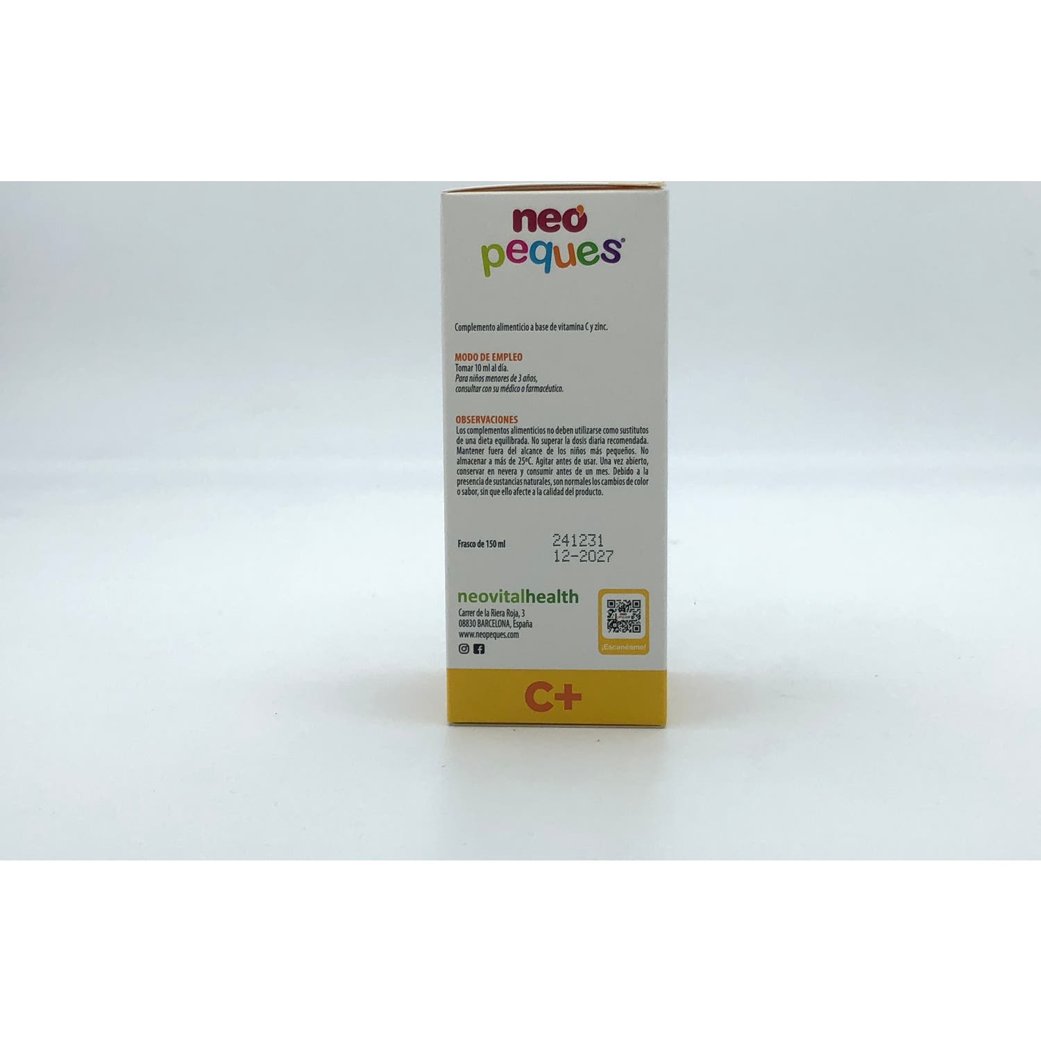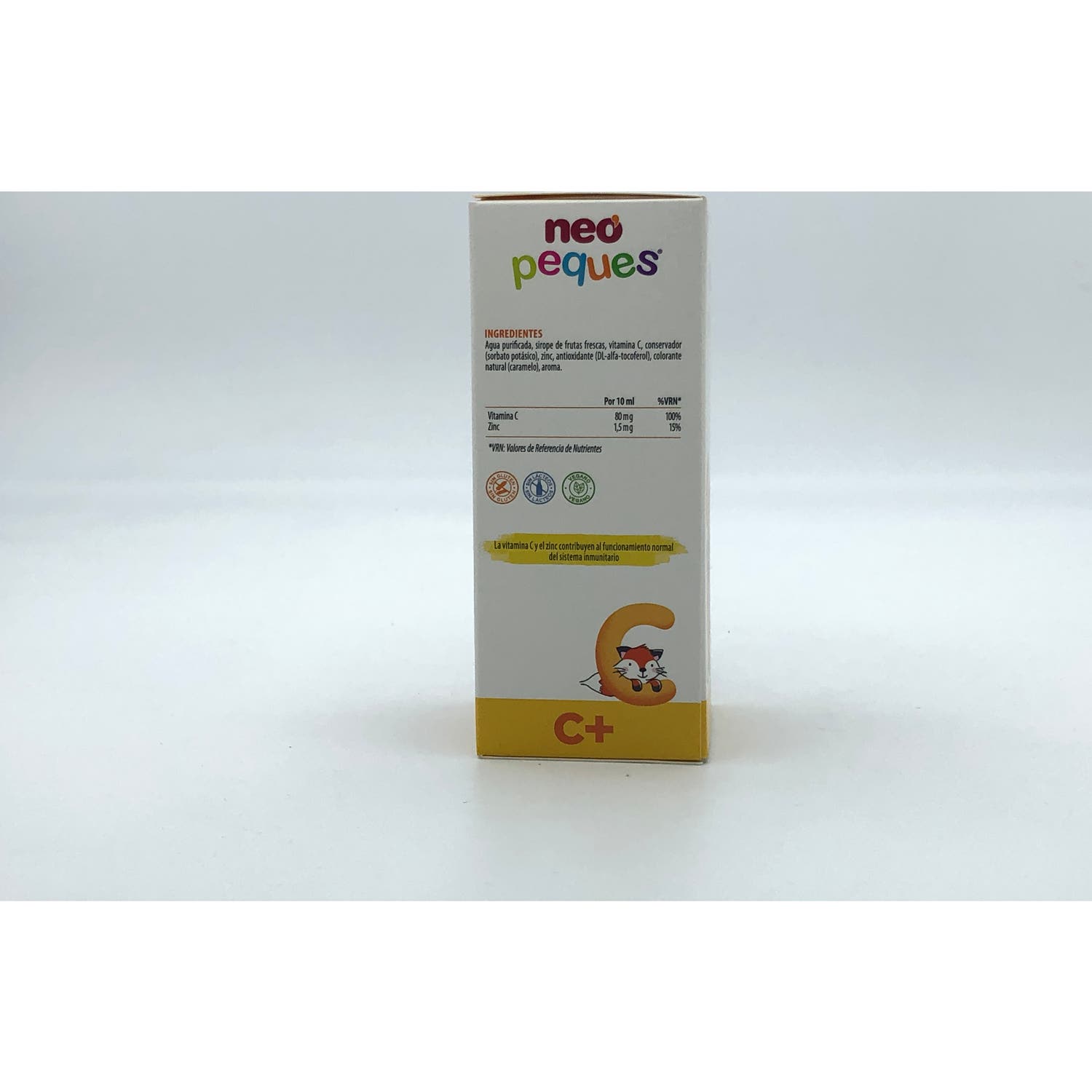 Complemento alimenticio a base de vitamina C para niños, indicado para niños mayores de 3 años, con sabor a naranja.
