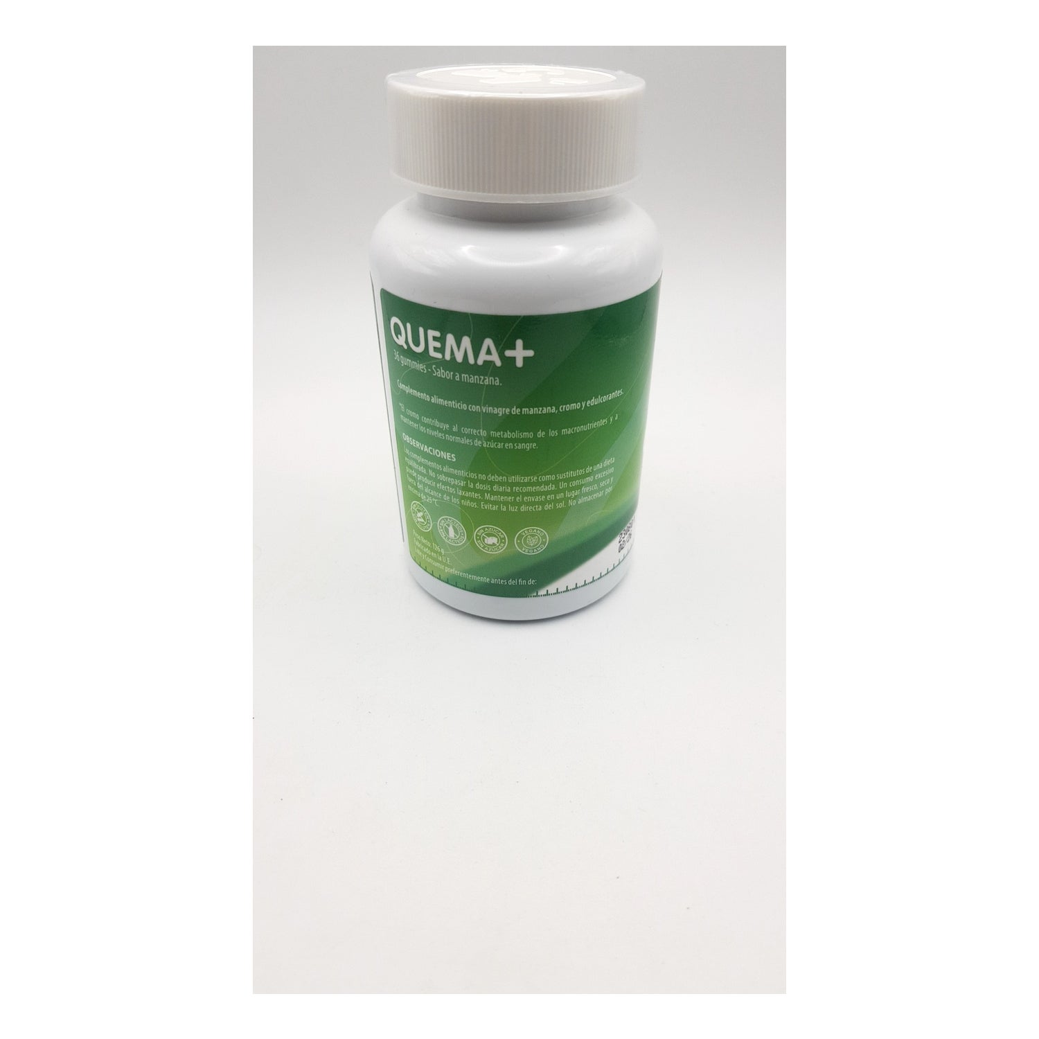 Neo Quema+ Gummies Apple 36uds es un complemento alimenticio en formato gominolas y a base de vinagre de manzana y cromo. Contribuye a ejercer un efecto saciante y a acelerar el metabolismo. Asimismo, el cromo facilita el correcto metabolismo de los macronutrientes y a mantener los niveles normales de azúcar en sangre. Apto para veganos. Contiene 36 gominolas.