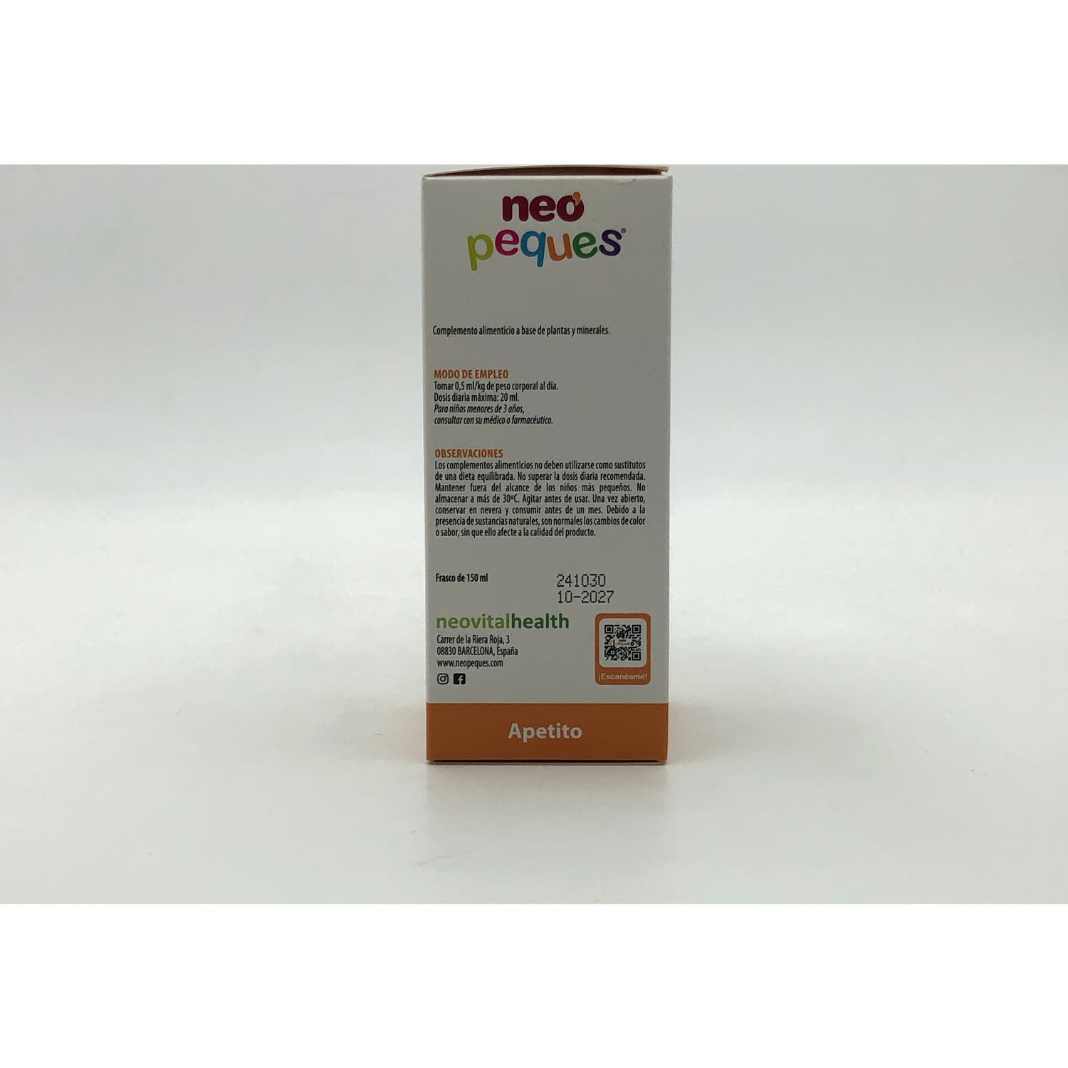 NeoPeques® Apetito es un jarabe elaborado a base de extractos de plantas que han sido usadas tradicionalmente para mantener el tono de forma habitual y abrir el apetito para los más pequeños de la casa. Además, su formulación contiene néctar de ágave, una sustancia constituida por azúcares naturales no refinados, con lo cual se evitan los picos glucémicos. De este modo conseguirás controlar el aporte calórico de tus hijos.