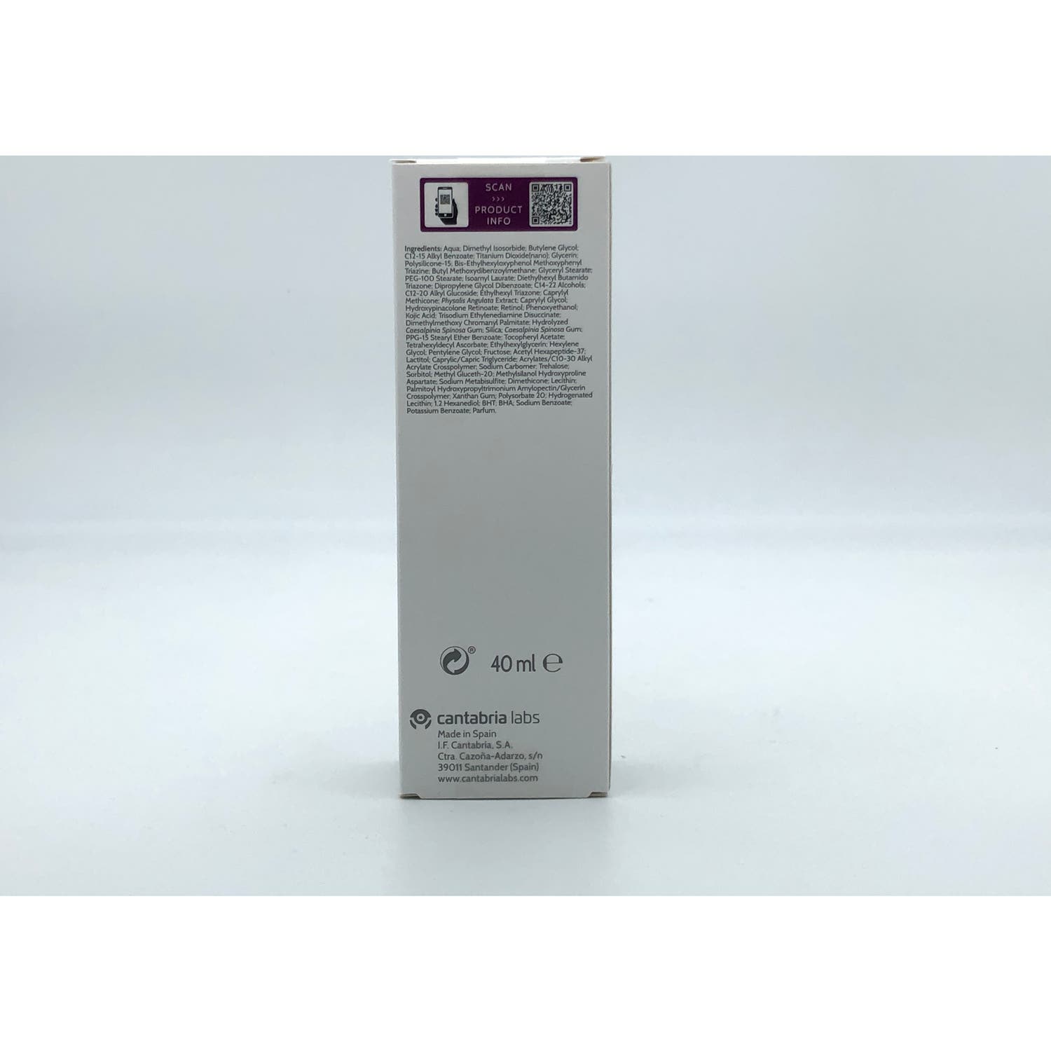 AQUA, DIMETHYL ISOSORBIDE, BUTYLENE GLYCOL, C12-15 ALKYL BENZOATE, TITANIUM DIOXIDE (NANO), POLYSILICONE-15, GLYCERIN, BIS-ETHYLHEXYLOXYPHENOL METHOXYPHENYL TRIAZINE, BUTYL METHOXYDIBENZOYLMETHANE, GLYCERYL STEARATE, PEG-100 STEARATE, ISOAMYL LAURATE, DIETHYL HEXYL BUTAMIDO TRIAZONE, DIPROPYLENE GLYCOL DIBENZOATE, C14-22 ALCOHOLS, C12-20 ALKYL GLUCOSIDE, ETHYL HEXYL TRIAZONE, CAPRYLYL METHICONE, PHYSALIS ANGULATA EXTRACT, CAPRYLYL GLYCOL, HYDROXYPINACOLONE RETINOATE, RETINOL, PHENOXYETHANOL, PROPYLENE GLYCOL, KOJIC ACID, TRISODIUM ETHYLENEDIAMINE DISUCCINATE, DIMETHYLMETHOXY CHROMANYL PALMITATE, HYDROLYZED CAESALPINIA SPINOSA GUM, SILICA, CAESALPINIA SPINOSA GUM, PPG-15 STEARYL ETHER BENZOATE, TOCOPHERYL ACETATE, TETRAHEXYLDECYL ASCORBATE, ETHYLHEXYLGLYCERIN, HEXYLENE GLYCOL, PENTYLENE GLYCOL, FRUCTOSE, ACETYL HEXAPEPTIDE-37, LACTITOL, CA PRYLIC/CA PRIC TRIGLYCERIDE, ACRYLATES/C10-30 ALKYL ACRYLATE CROSSPOLYMER, SODIUM CARBOMER, TREHALOSE, SORBITOL, METHYL GLUCETH-20, METHYLSILANOL HYDROXYPROLINE ASPARTATE, SODIUM METABISULFITE, DIMETHICONE, LECITHIN, PALMITOYL HYDROXYPROPYL TRIMONIUM AMYLOPECTIN/GLYCERIN CROSSPOLYMER, XANTHAN GUM, POLYSORBATE 20, HYDROGENATED LECITHIN, PARFUM.