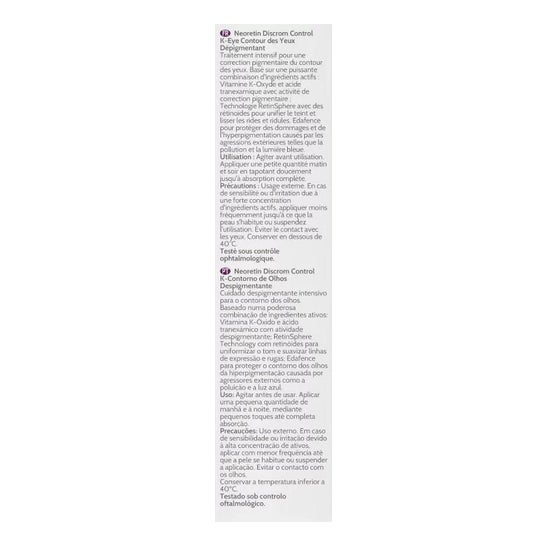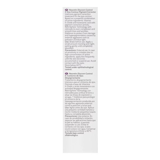 Neoretin Discrom Control K Despigmentante Contorno de ojos 15ml es una crema hidratante que aporta una acción antimanchas de la zona del contorno de ojos que contribuye alisar las líneas de expresión.